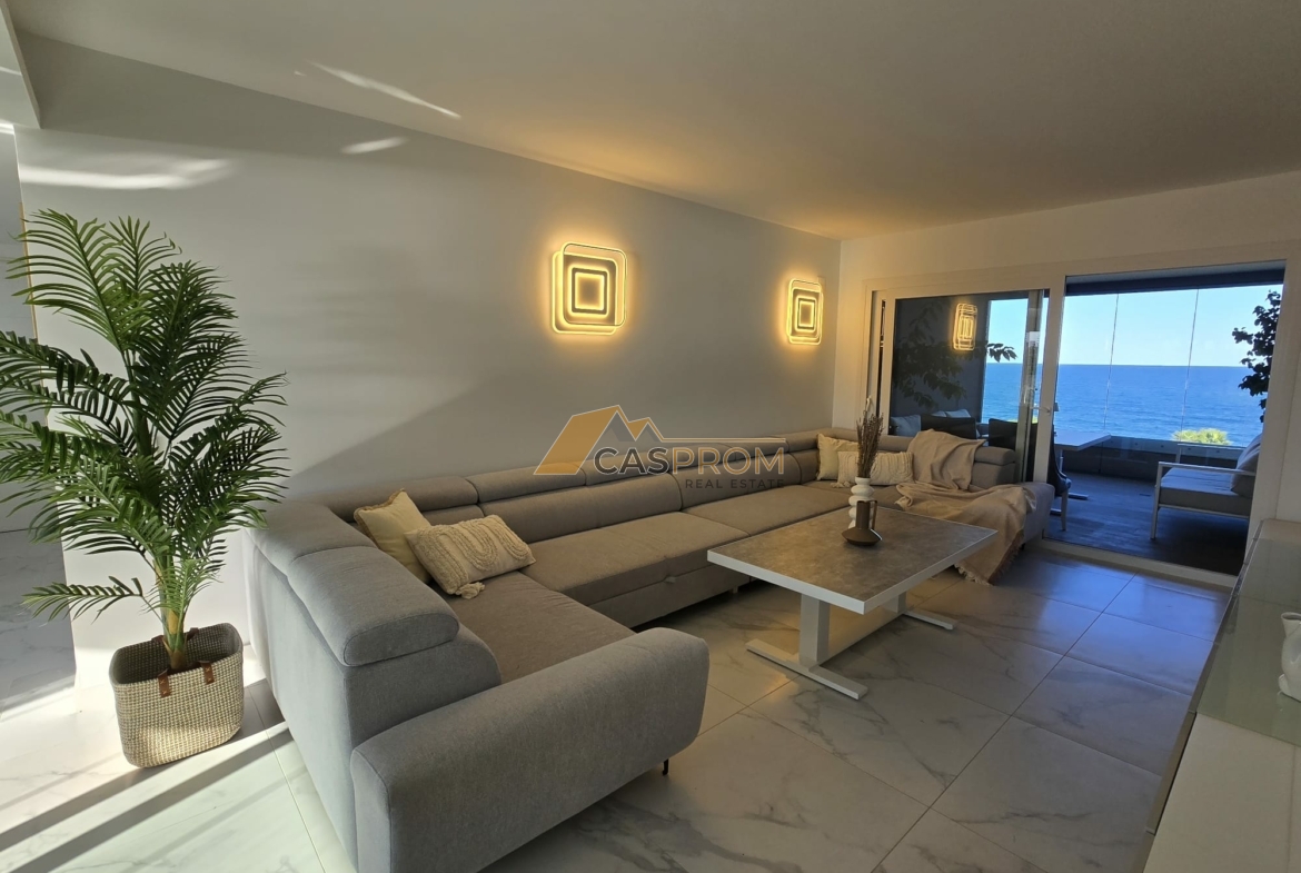 The apartment located on the 4th floor offers a frontal sea view, which can be admired from up to three glazed terraces, providing relaxation at any time of the day. Thanks to the corner layout, the sea view extends from every room. The interior is fully furnished, equipped with household appliances and ready to move in – a modern kitchen fully integrated with the living space and a bright living room with dining room.