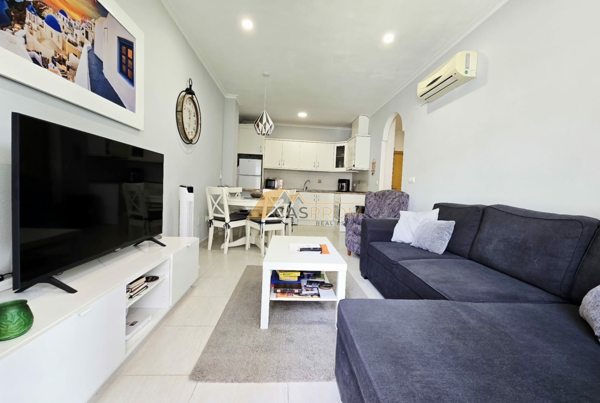 Este precioso apartamento está situado en una urbanización cerrada con piscina comunitaria, que ofrece tranquilidad y privacidad. La propiedad se encuentra en muy buen estado, cuidada y lista para entrar a vivir o como inversión para alquiler. La amplia terraza de unos 40 m² es el lugar perfecto para relajarse y disfrutar al aire libre, mientras que su orientación sur garantiza sol durante todo el día.