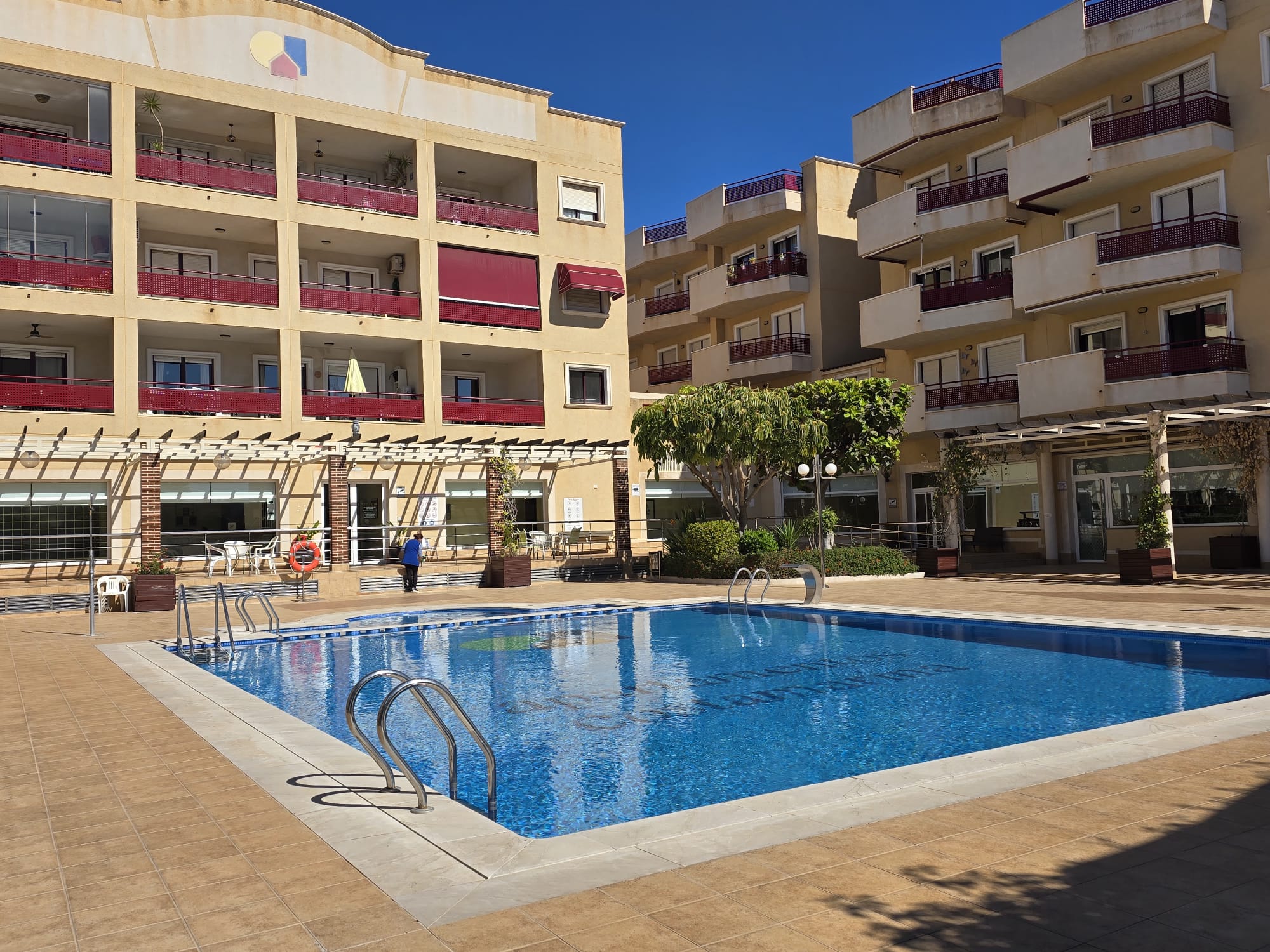 La urbanización cuenta con piscina comunitaria y una plaza de aparcamiento en garaje está incluida en el precio.