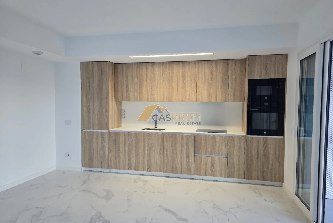 The kitchen is fully equipped with high-quality appliances, including a hob, oven, microwave, refrigerator with freezer, and dishwasher. The bathrooms are elegantly finished and feature modern showers, designer fixtures, illuminated mirrors, and carefully selected details. The apartment features two comfortable bedrooms with built-in wardrobes, ensuring practical use of space. A private parking space and a storage unit are additional benefits. The property is equipped with central air conditioning, underfloor heating, and electric blinds in the bedrooms, significantly enhancing everyday comfort.