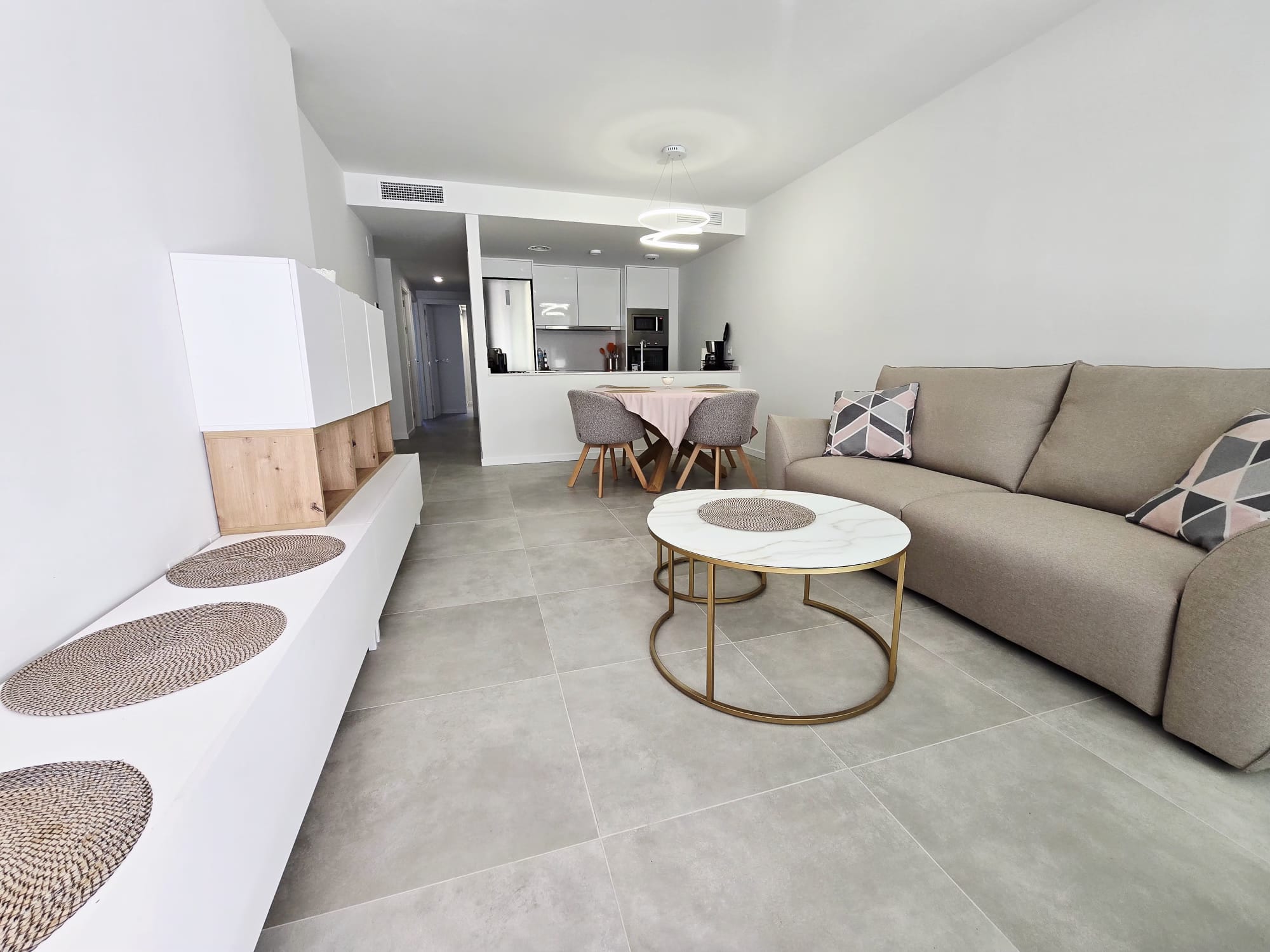 La propiedad ofrece interiores amplios y luminosos, una distribución inteligente y acabados de alta calidad. El salón con comedor y la cocina americana crean un espacio confortable con acceso directo a la terraza. La cocina está equipada con electrodomésticos modernos y acabados de alta calidad. El apartamento cuenta con dos dormitorios y dos baños, garantizando la comodidad tanto de residentes como de invitados.