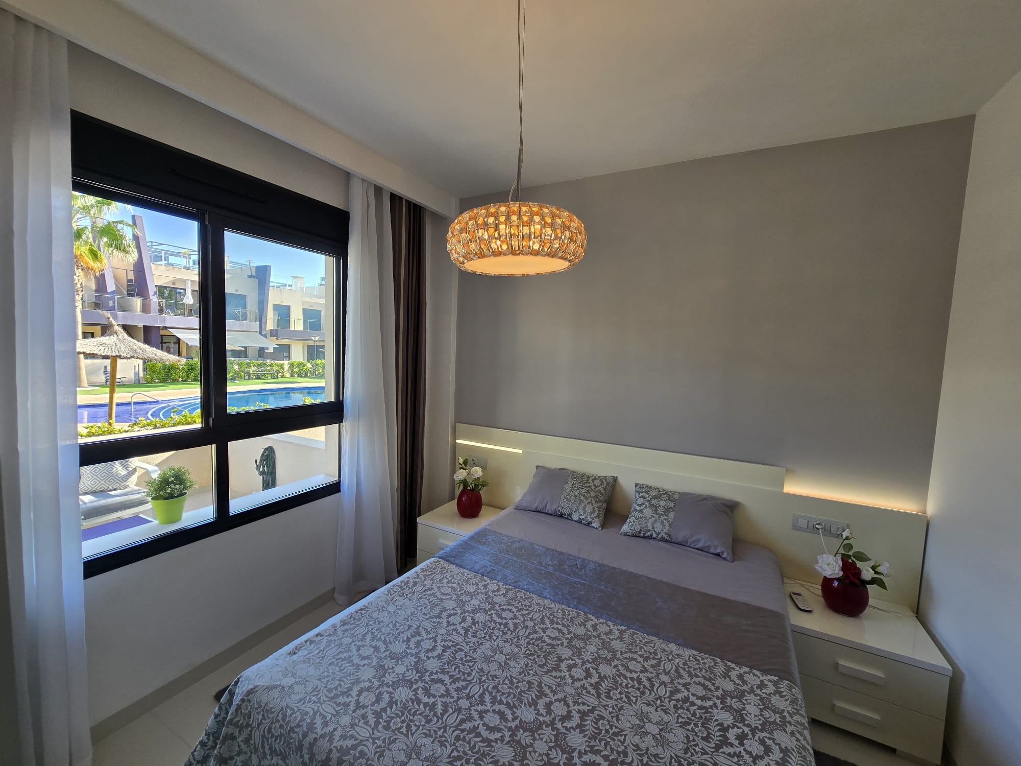 La urbanización ofrece numerosas comodidades: varias piscinas grandes, jacuzzi, parque infantil y zonas comunes verdes y bien cuidadas. Disfrute de su café por la mañana en la terraza bajo el sol o de una tarde relajándose a la sombra: este apartamento ofrece el entorno perfecto para cualquier momento del día.