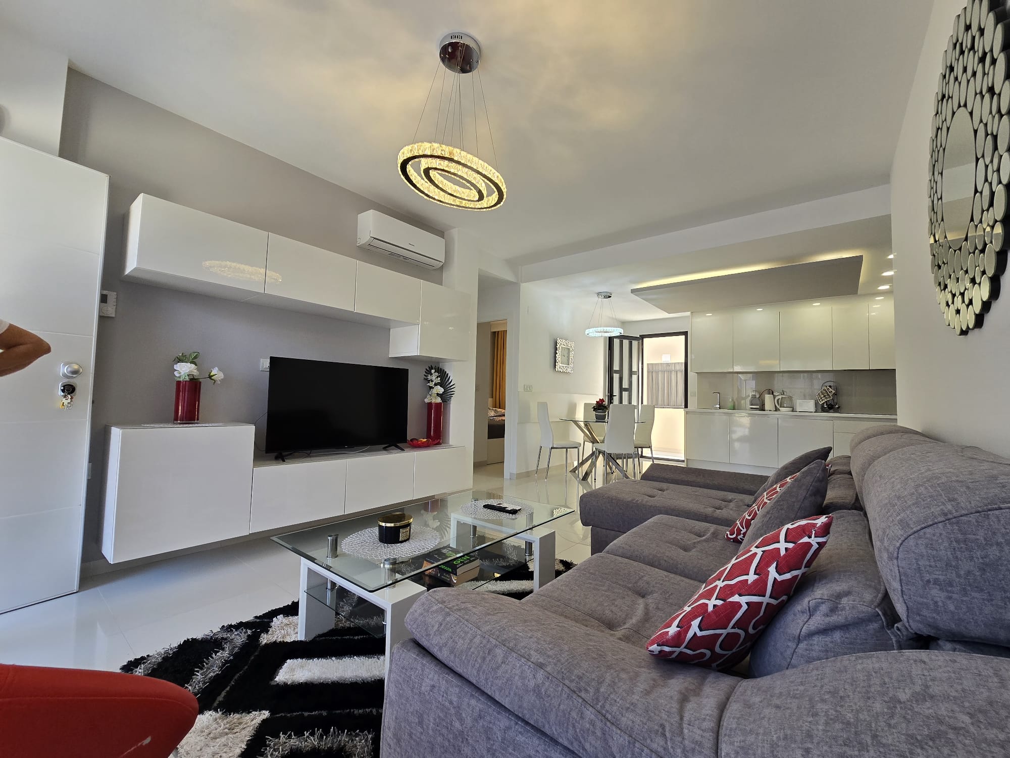 The property is fully furnished and equipped with air conditioning, ensuring year-round comfort. A practical utility room is also included. Additionally, there’s a large outdoor parking lot in front of the complex, where you’ll always find a parking space.