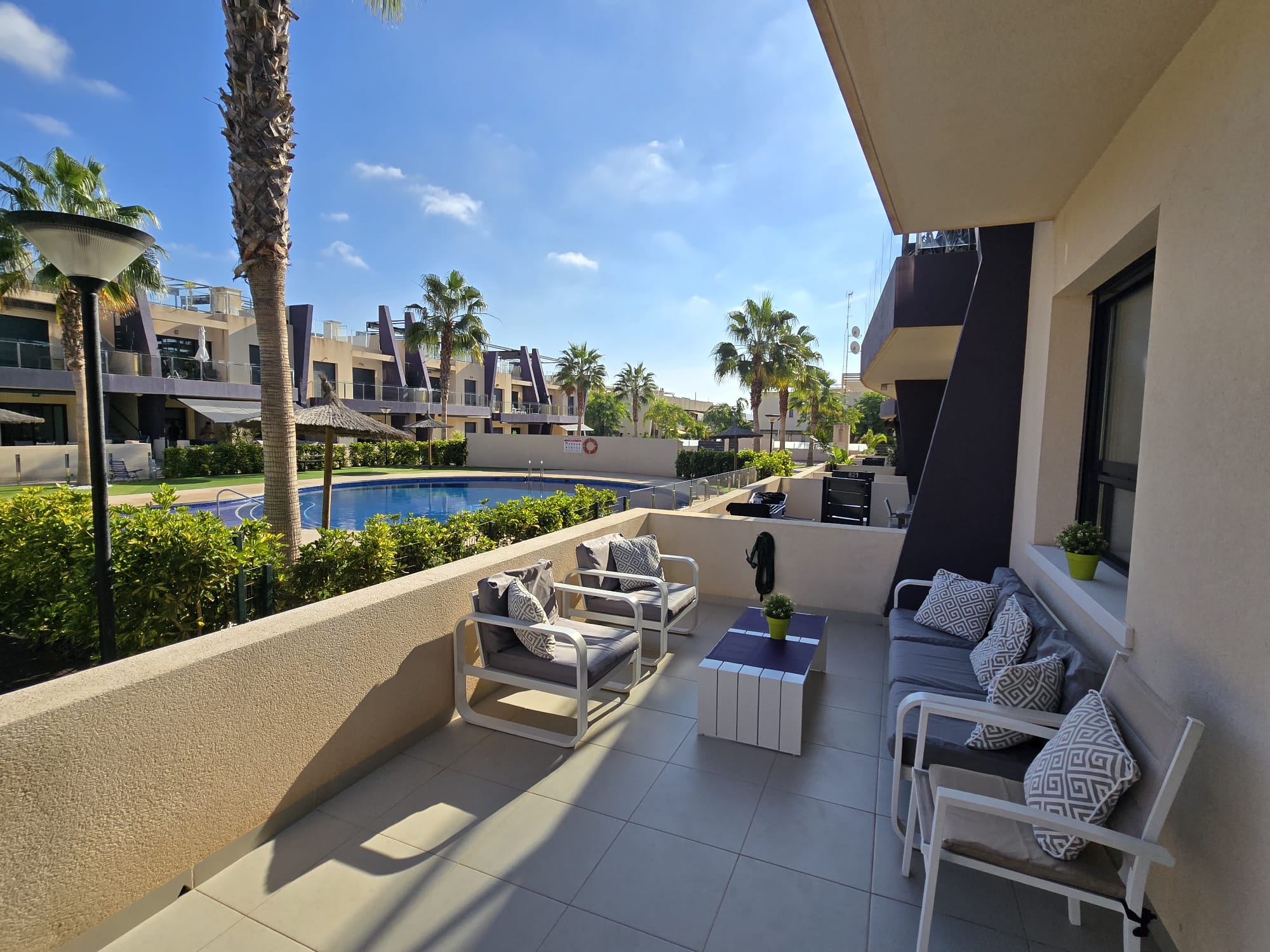 The development offers numerous amenities: several large swimming pools, a jacuzzi, a children’s playground, and well-maintained, green common areas. Enjoy your morning coffee on the terrace in the sunshine or an afternoon relaxing in the shade – this apartment provides the perfect setting for any time of day.