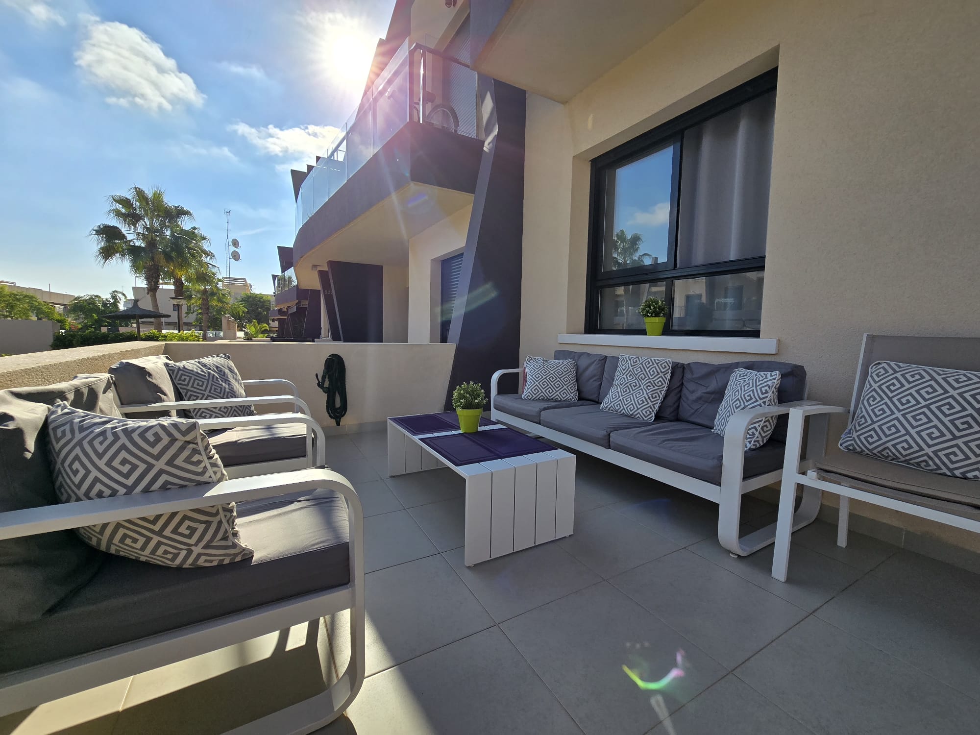 This modern apartment is in excellent condition, move-in ready, located in a gated and secure community built in 2019. The living room/dining area is bright and spacious, with direct access to the terrace leading to the pool and communal areas of the community. The terrace off the kitchen provides additional space, perfect for al fresco dining.