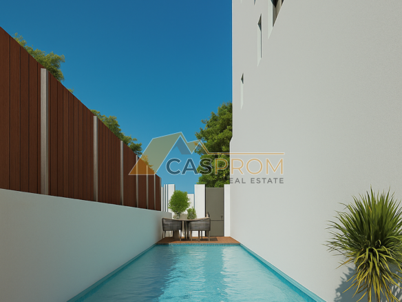 The bathrooms are elegantly equipped with modern furniture, shower trays, shower screens and mirrors. The kitchen looks stylish, furnished and equipped with a washbasin with a tap and a hood. The interiors are bright and spacious, and the bedrooms offer functional built-in wardrobes. Additionally, the price includes a preinstallation of air conditioning, a video intercom and LED lighting.