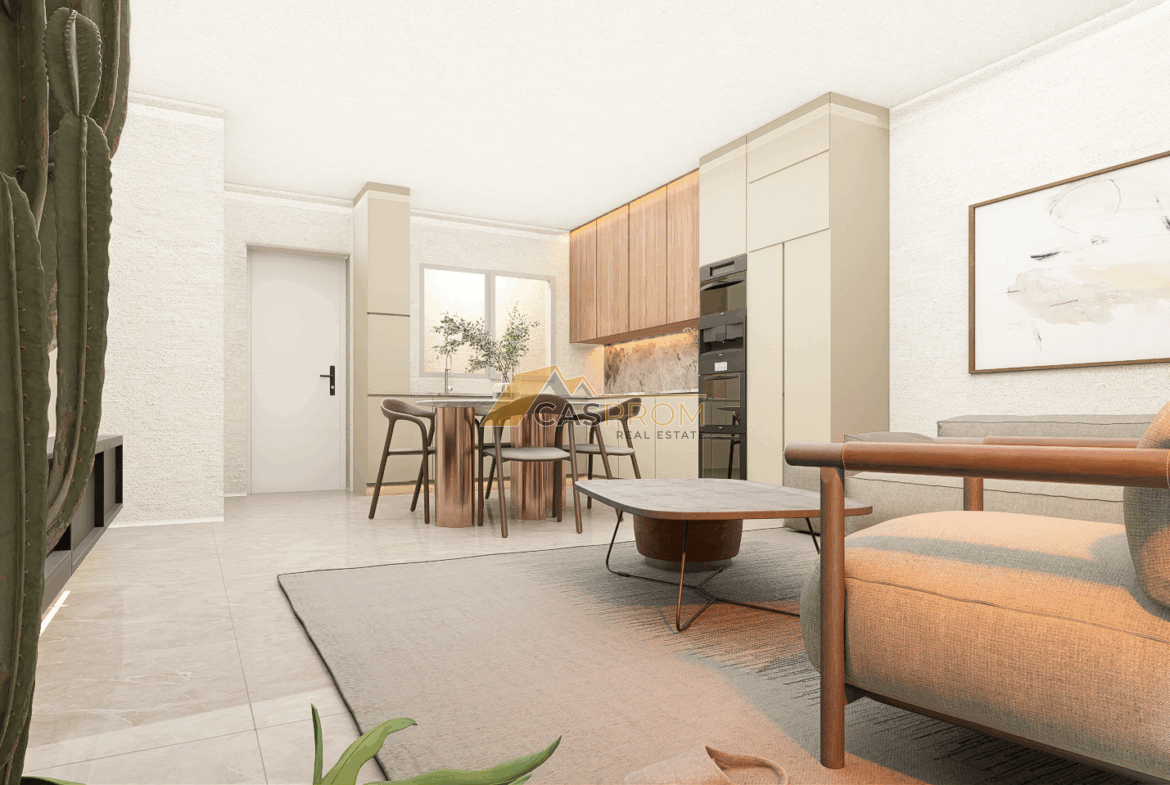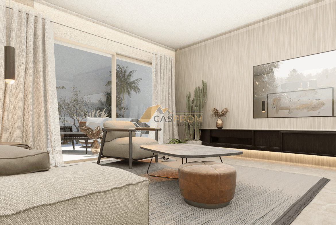 The apartment also includes a large solarium with a summer kitchen – the perfect place to relax, socialize, and sunbathe. Residents of the complex have access to a communal swimming pool and well-maintained green areas.