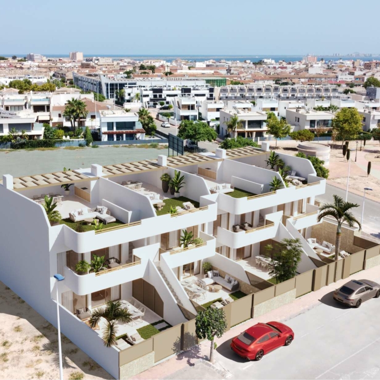 Este moderno y elegante bungalow se encuentra en San Pedro del Pinatar, una de las zonas más exclusivas de la Costa Cálida. Ideal tanto para vivir