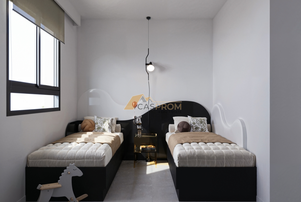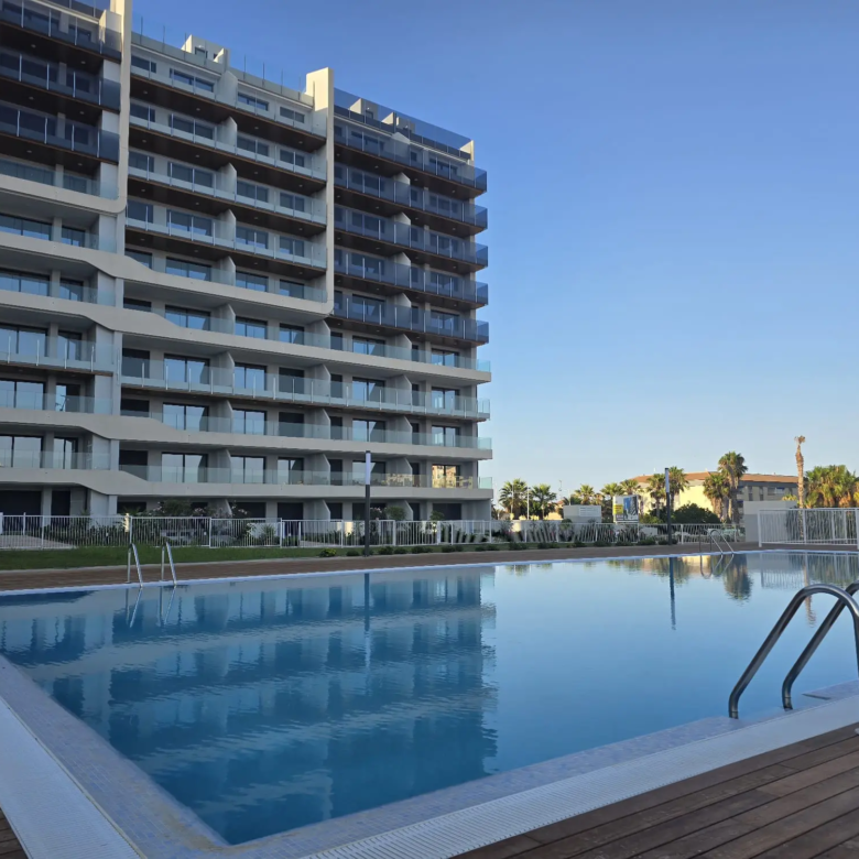 The development offers extensive common areas, including two large communal areas totaling 3,434 m². Residents also have access to three swimming pools for both adults and children, surrounded by well-maintained gardens. Additionally, the development has telecommunications infrastructure (TV, internet, and phone) available to residents.