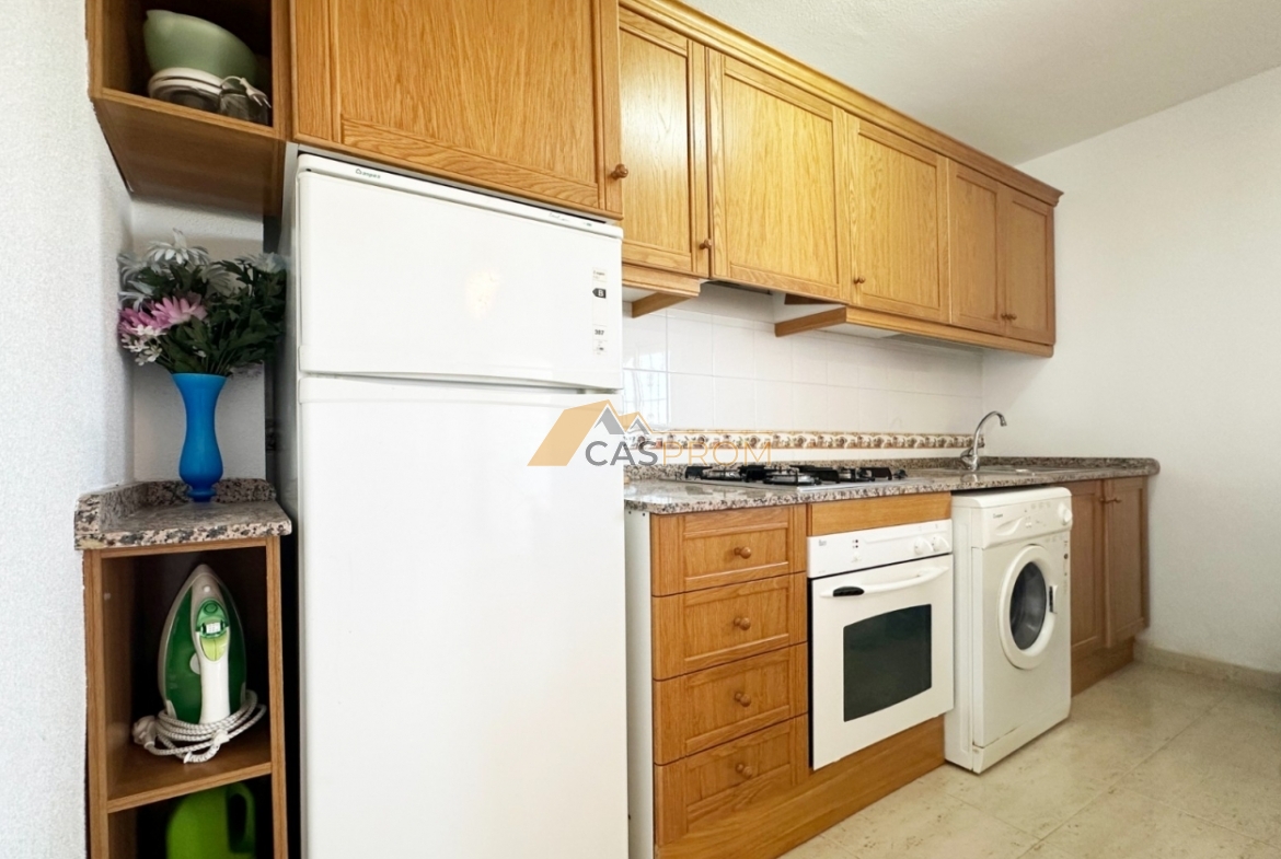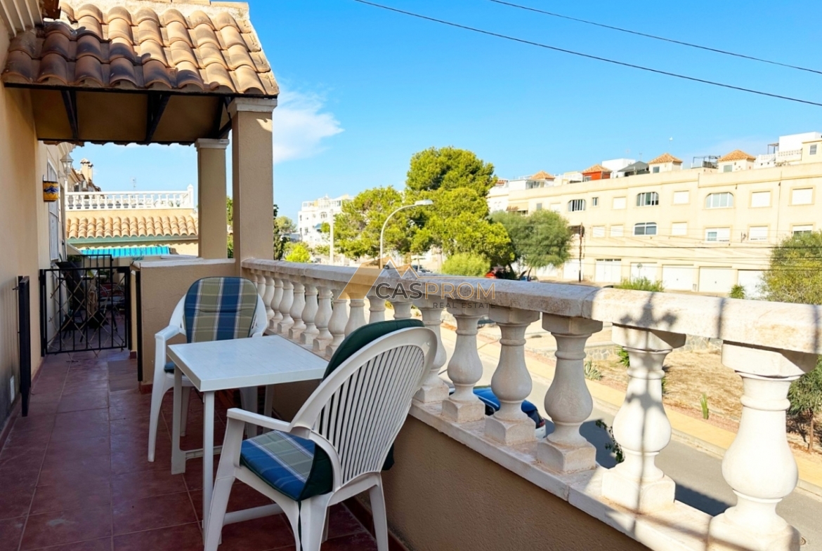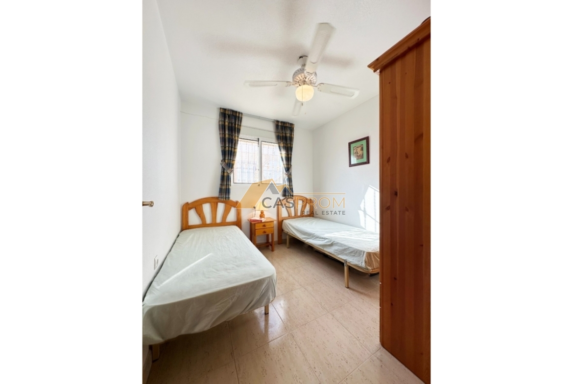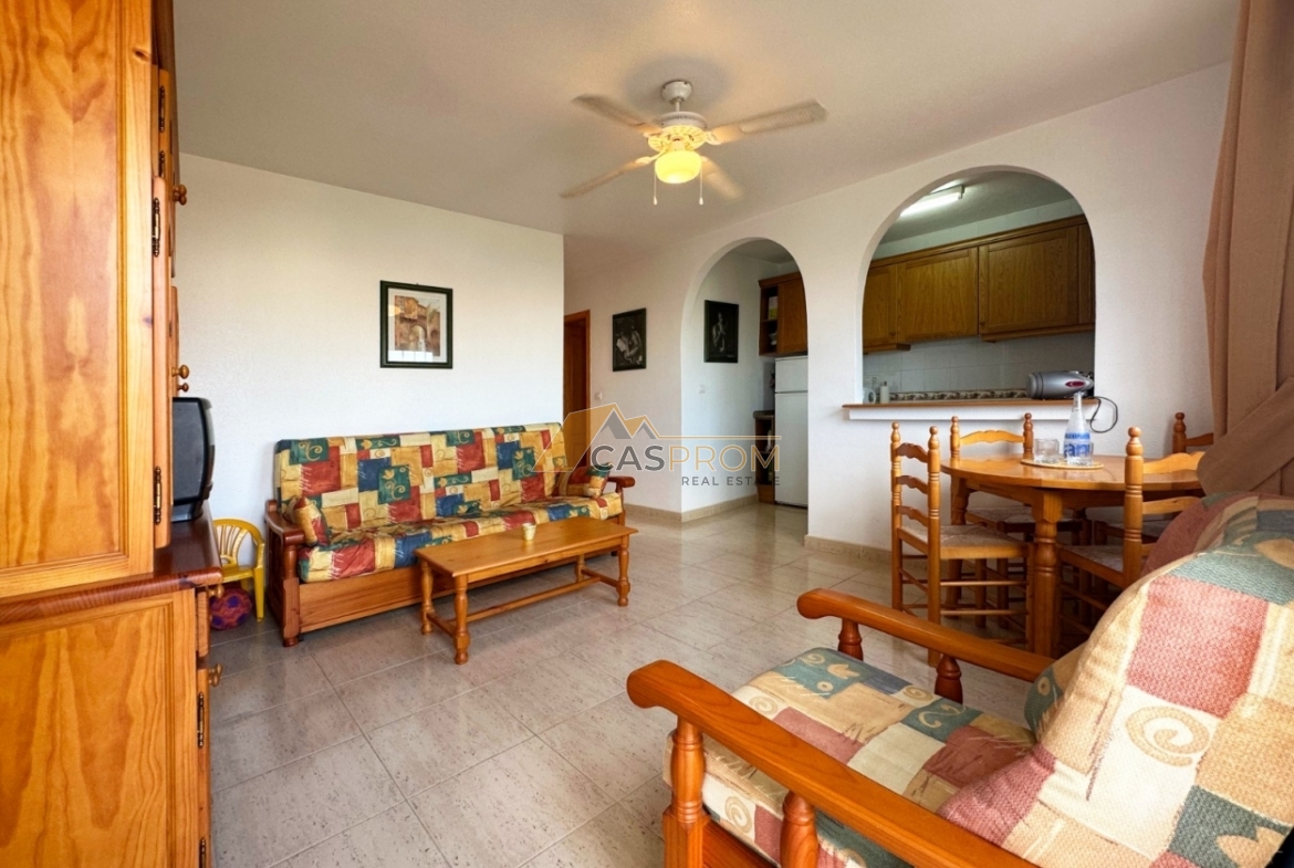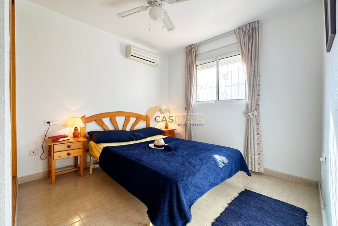 Te presentamos este encantador bungalow en planta alta situado en el complejo Miramar Golf II, en la prestigiosa zona de El Galán/Villamartín. La superficie útil de 45 m² está distribuida de forma funcional y acogedora: dos cómodos dormitorios, un baño elegante, cocina americana abierta y un luminoso salón-comedor. El solárium/terraza de 8 m² es perfecto para disfrutar del sol y de las maravillosas vistas, incluyendo una bonita panorámica al mar. La vivienda se encuentra en buen estado, equipada con aire acondicionado, persianas eléctricas y se vende completamente amueblada. La urbanización cerrada ofrece una piscina comunitaria, convirtiéndola en una opción ideal tanto como vivienda permanente como para alquiler vacacional. Los bajos gastos comunitarios y la excelente ubicación la convierten en una gran oportunidad de inversión.