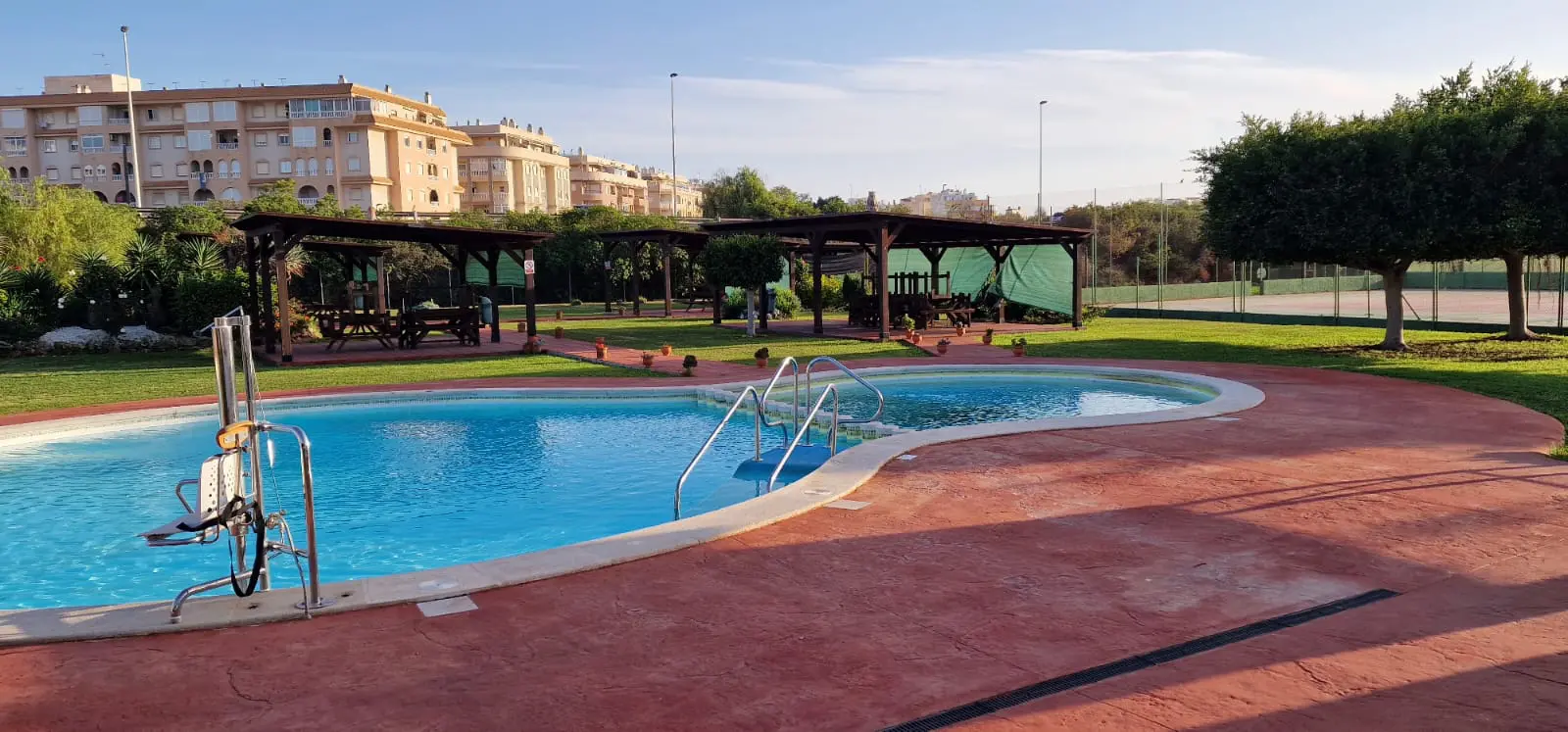 The estate offers many amenities such as: a large swimming pool with a bar and a relaxation area, tennis courts and a football pitch. And near the estate there is a picturesque walking route of about 6 km along the salt lakes.