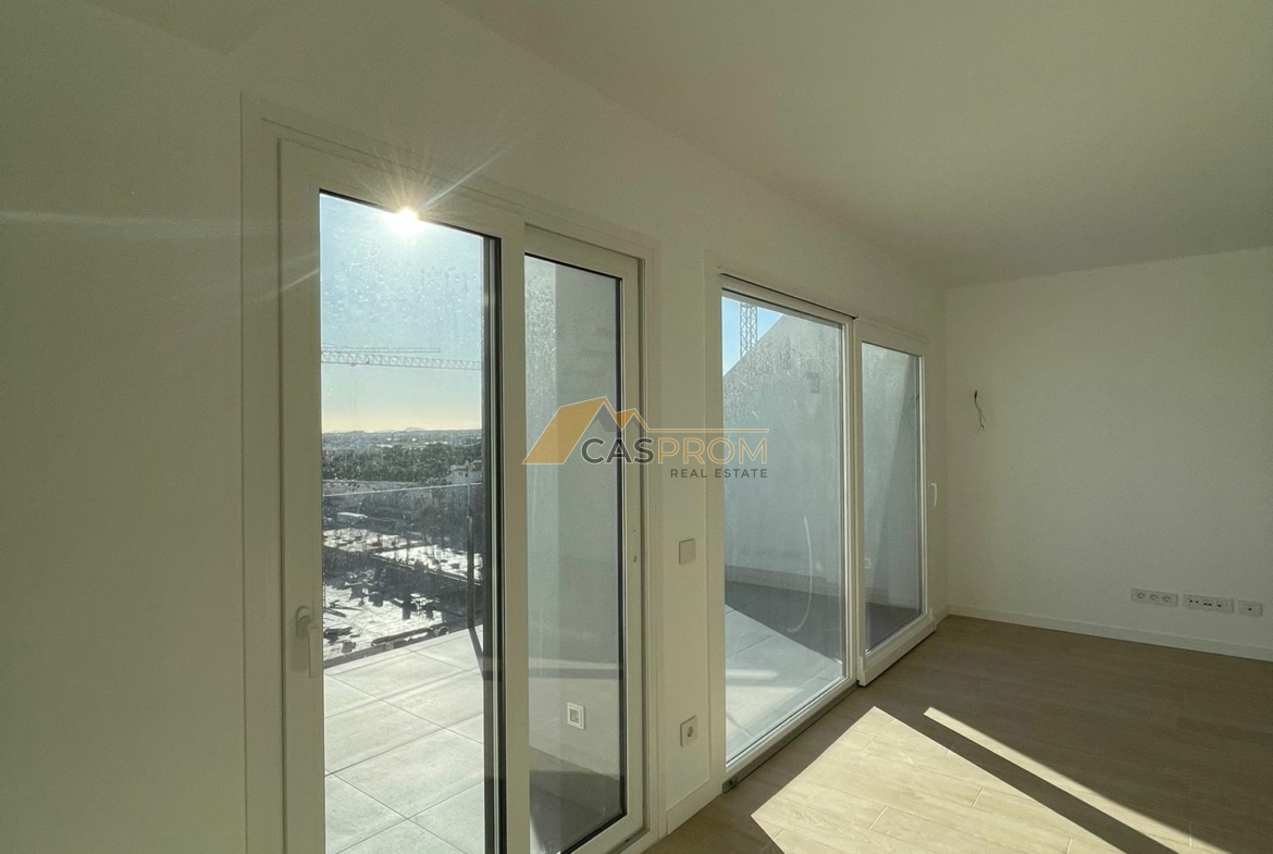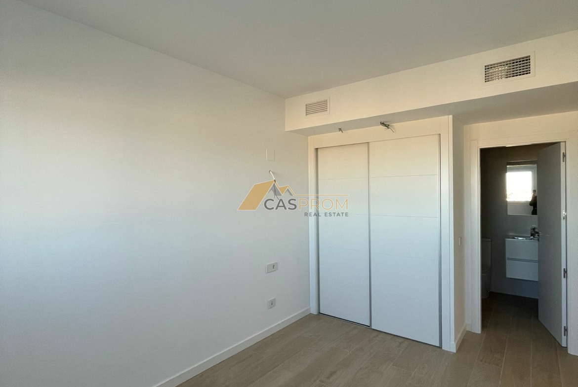 Este moderno apartamento en una nueva promoción, recién terminado y con acabados de la más alta calidad. Los interiores, amplios y luminosos, están diseñados pensando en la comodidad: los dormitorios cuentan con armarios empotrados y los elegantes baños cuentan con calefacción por suelo radiante, duchas acristaladas y grifería de diseño.