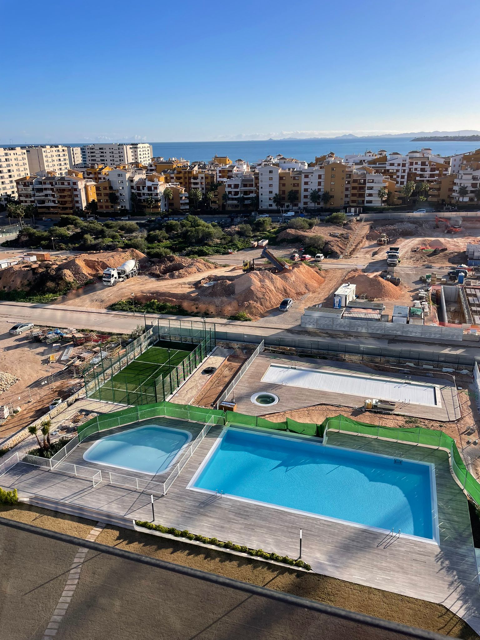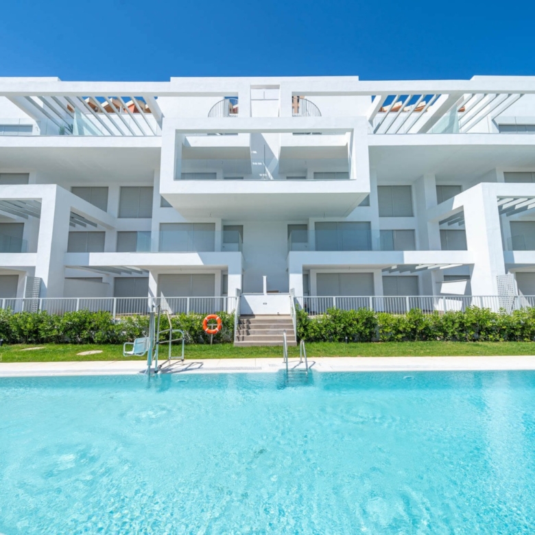 Las lujosas zonas comunes de la urbanización se complementan con tres piscinas, incluyendo piscina infantil y deportiva climatizada, jacuzzi, sauna y gimnasio con zona de fitness al aire libre. Para los más activos, hay una pista de pádel, mesas de petanca, ajedrez y ping-pong, y un parque infantil para los más pequeños. La urbanización está rodeada de jardines bien cuidados con riego automático y circuito cerrado de televisión las 24 horas. Cada apartamento incluye garaje subterráneo y trastero, y la preinstalación de cargadores para coches eléctricos es una comodidad adicional.