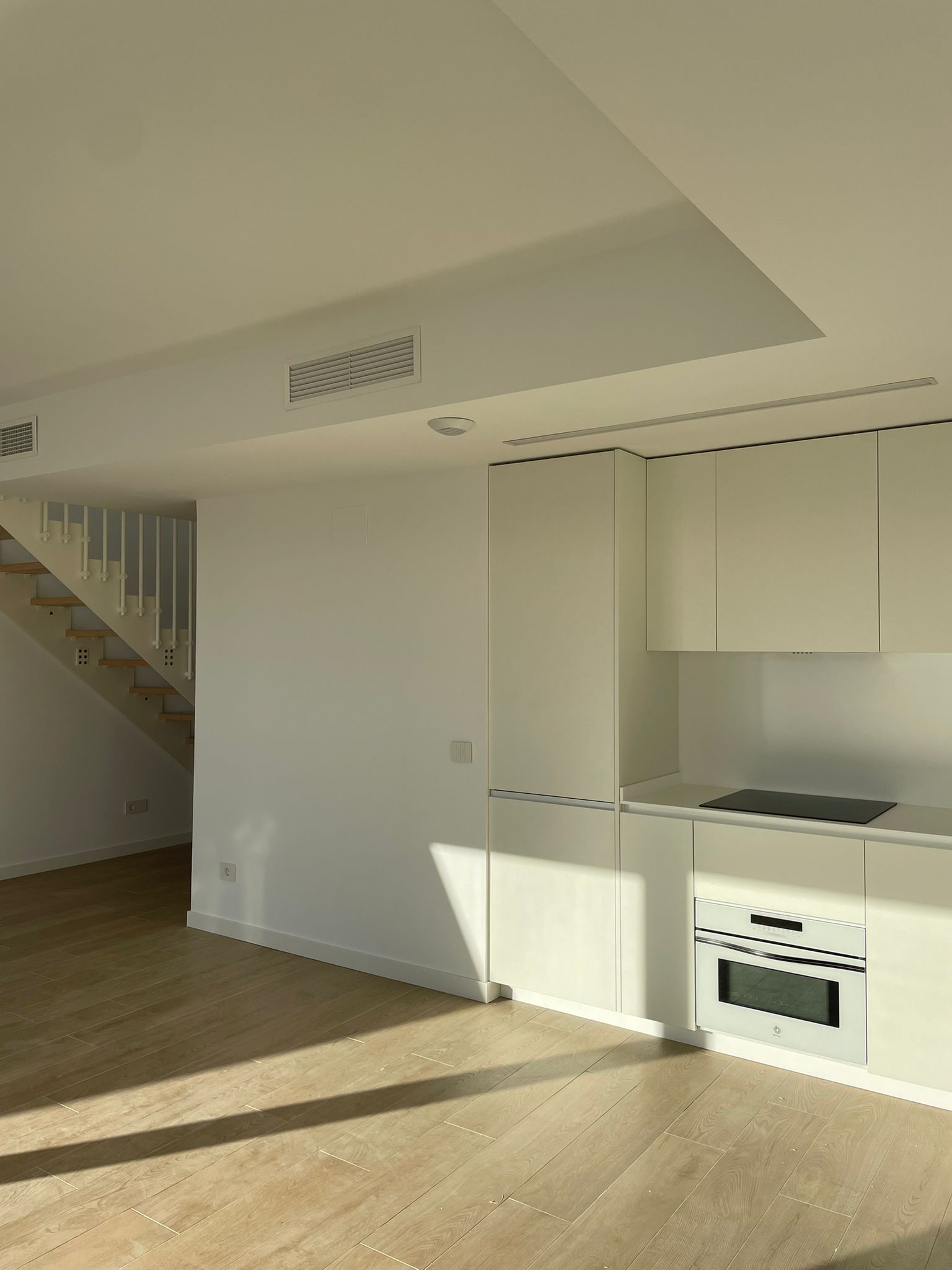 La cocina está totalmente equipada con electrodomésticos, incluyendo placa de inducción, horno, microondas, lavavajillas y frigorífico. El confort diario se ve reforzado por un moderno sistema de aire acondicionado y calefacción con bomba de calor aerotérmica, persianas eléctricas en los dormitorios, videoportero y un sistema de gestión domótica preinstalado.