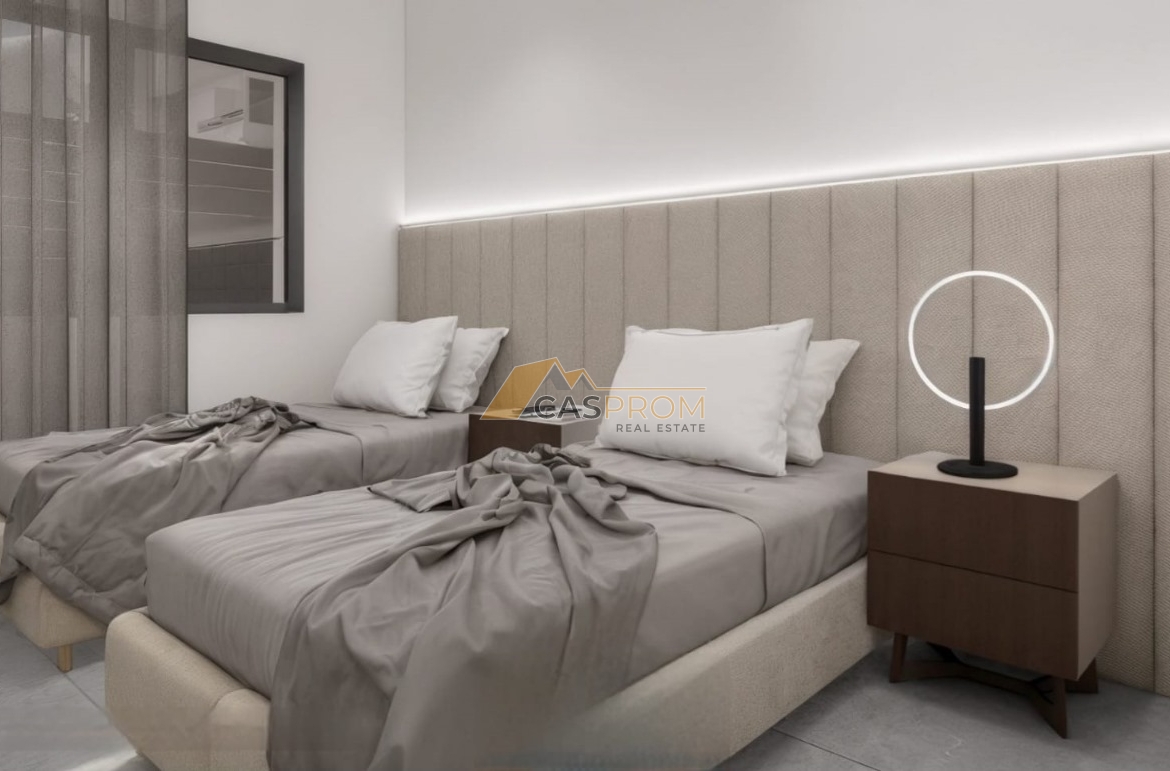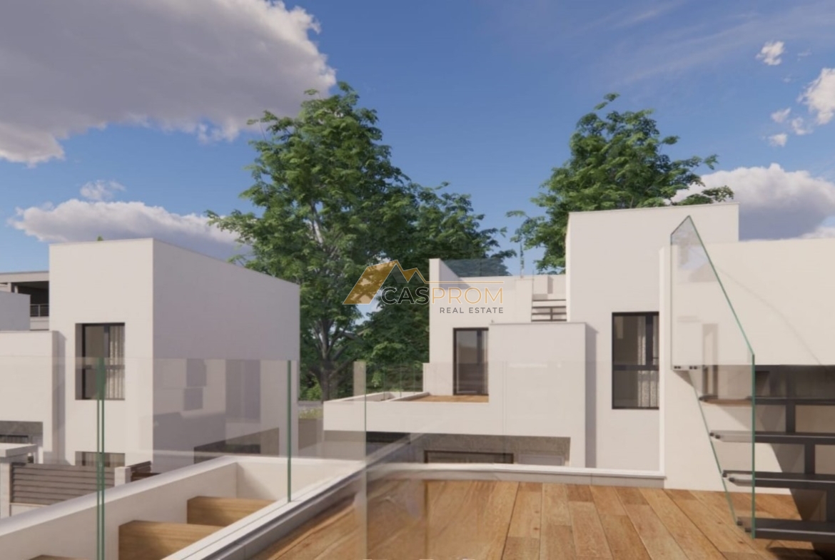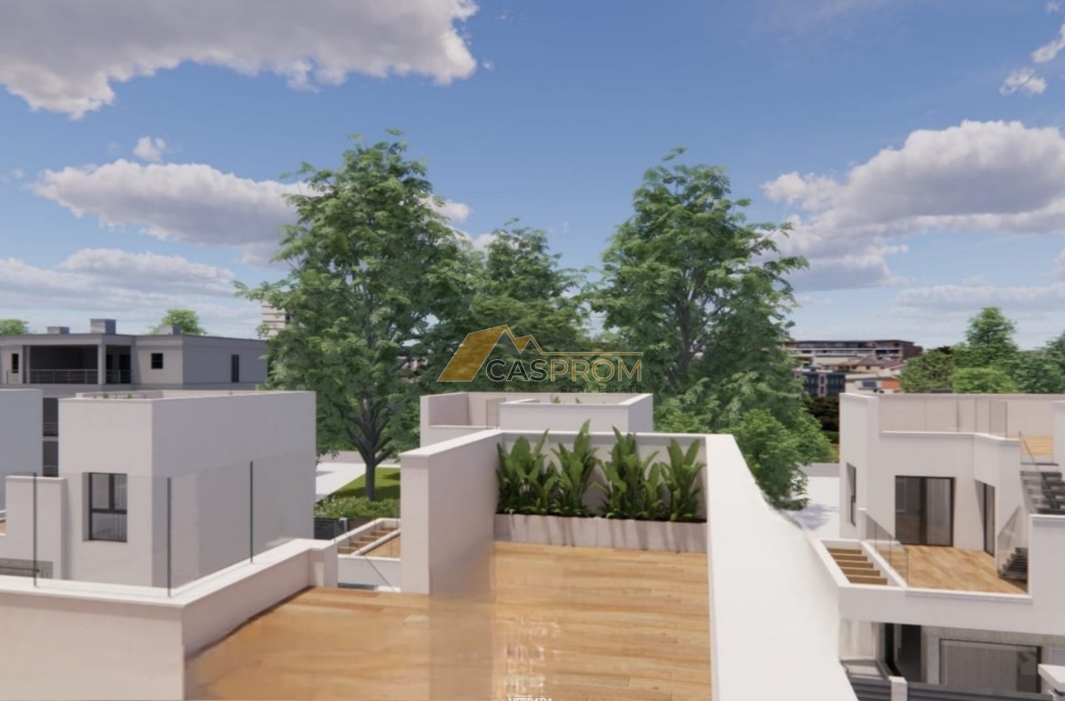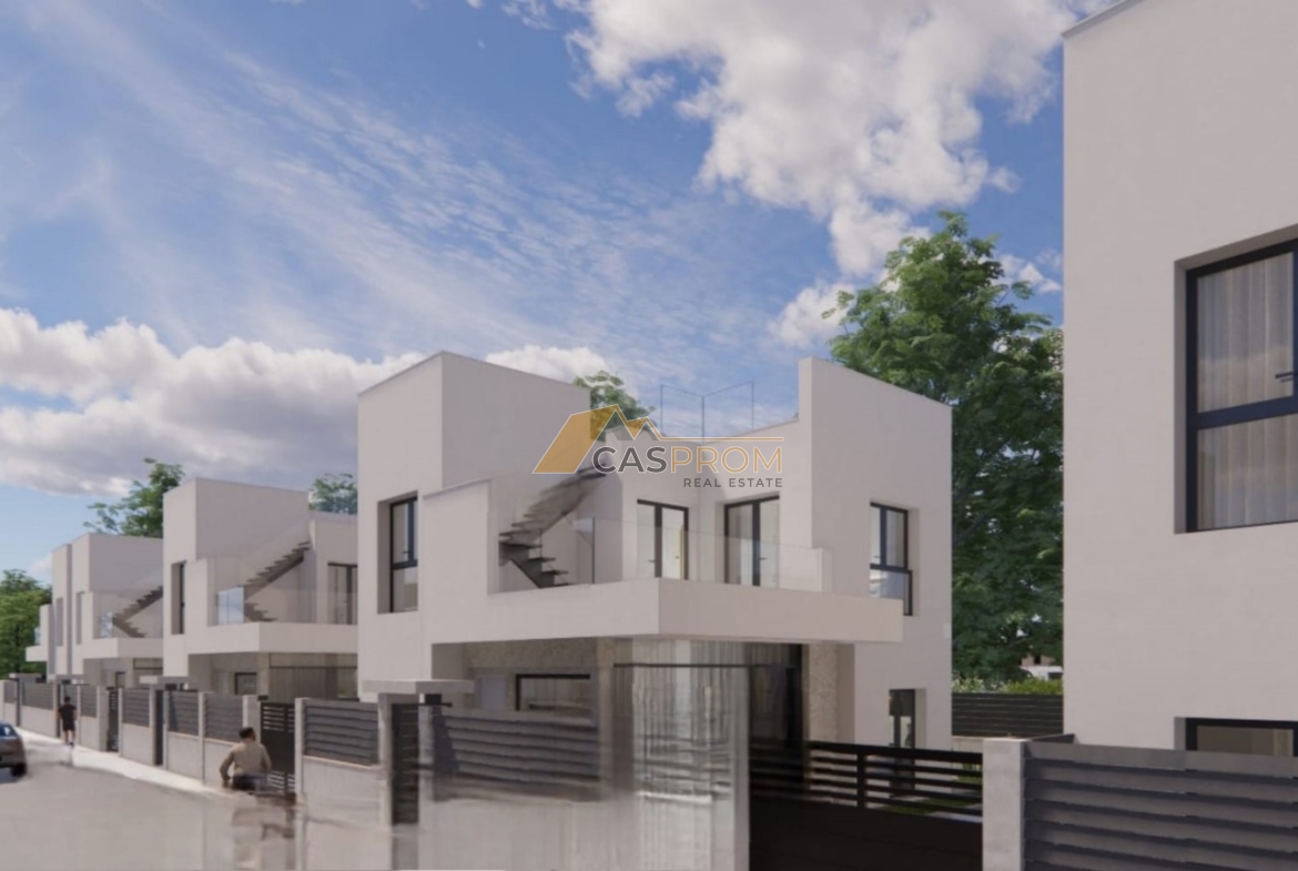 This modern villa is part of a prestigious development designed with comfort and a modern lifestyle in mind. High-standard finishes include a plaster and natural stone facade, aluminum windows with low-emissivity glass, electric shutters, and ceramic flooring throughout the interior and exterior.