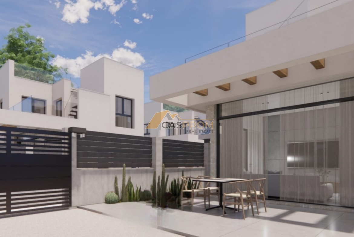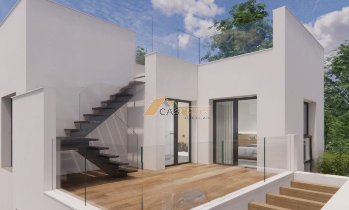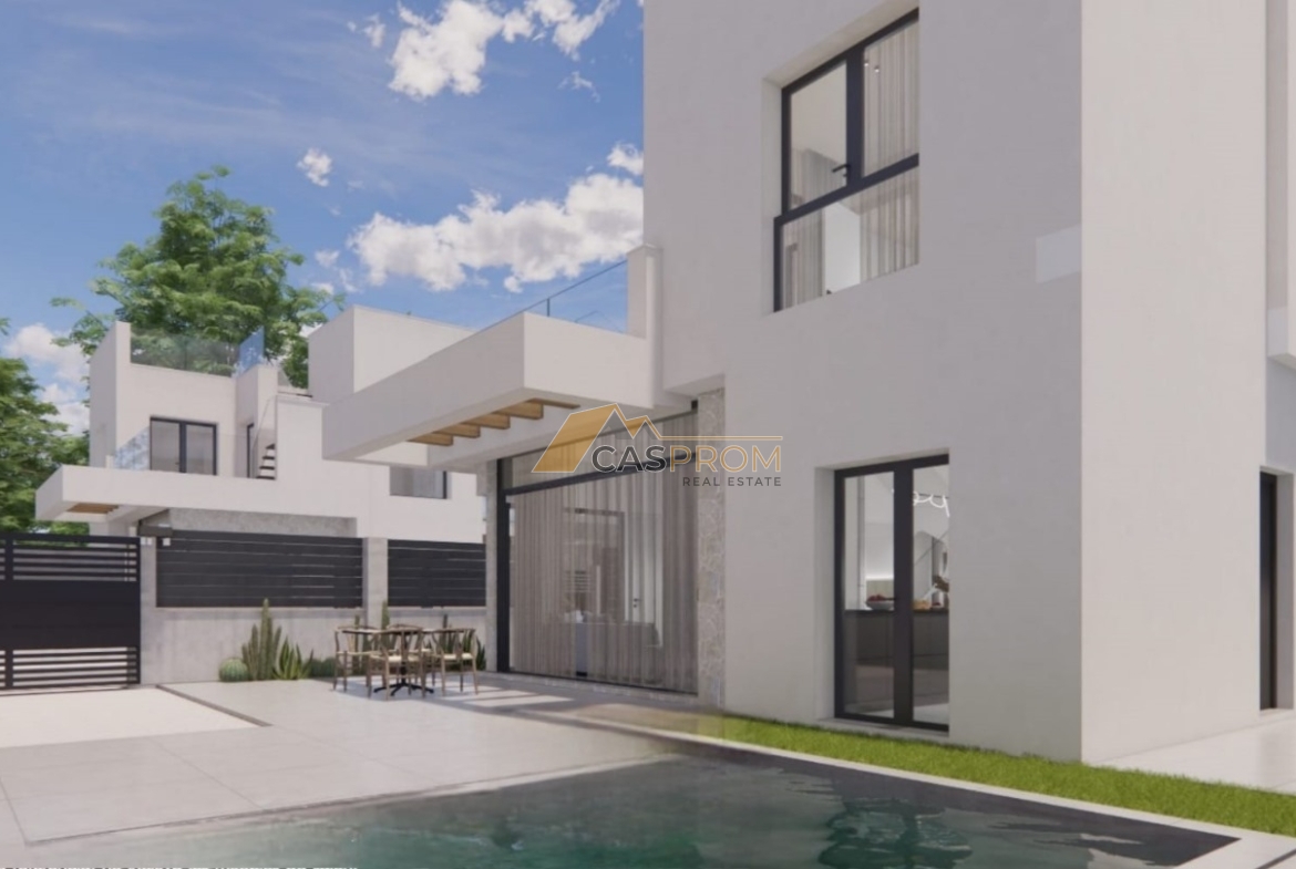 The villa can be upgraded with an elegant rooftop solarium for €16,900, the perfect place to relax and enjoy the views, or with a modern jacuzzi in the pool for €2,000, providing even more comfort and luxury in your garden.