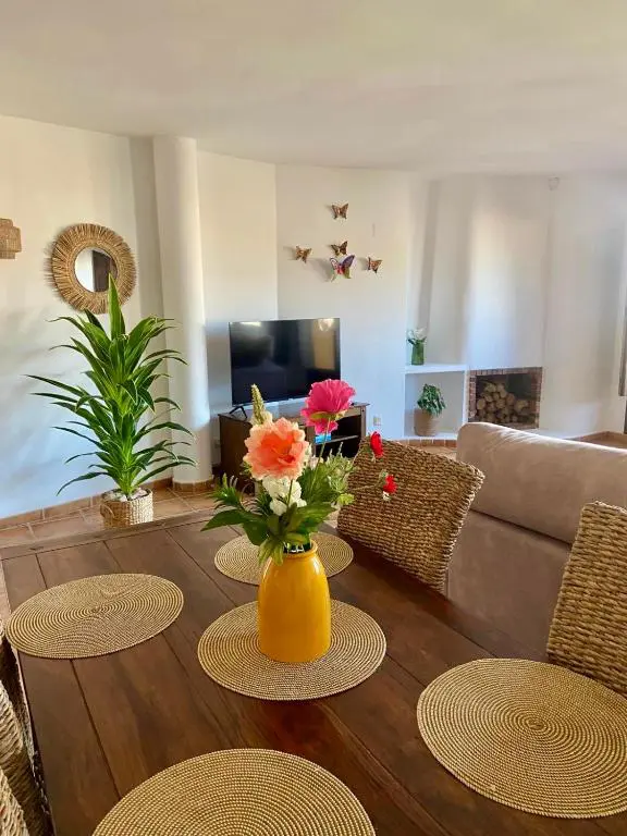 El apartamento consta de dos cómodos dormitorios: el principal con una cama grande y acceso directo a la terraza, y el segundo dormitorio con dos camas individuales. Hay dos baños completos: uno con ducha y WC, y el otro con bañera y WC. La zona de estar incluye un amplio y luminoso salón con TV, conectado a la cocina y al comedor, y con acceso a una espaciosa terraza. Unas escaleras conducen desde la terraza a un solárium privado en la azotea, el lugar perfecto para tomar el sol, relajarse y disfrutar del aire libre durante todo el año.
