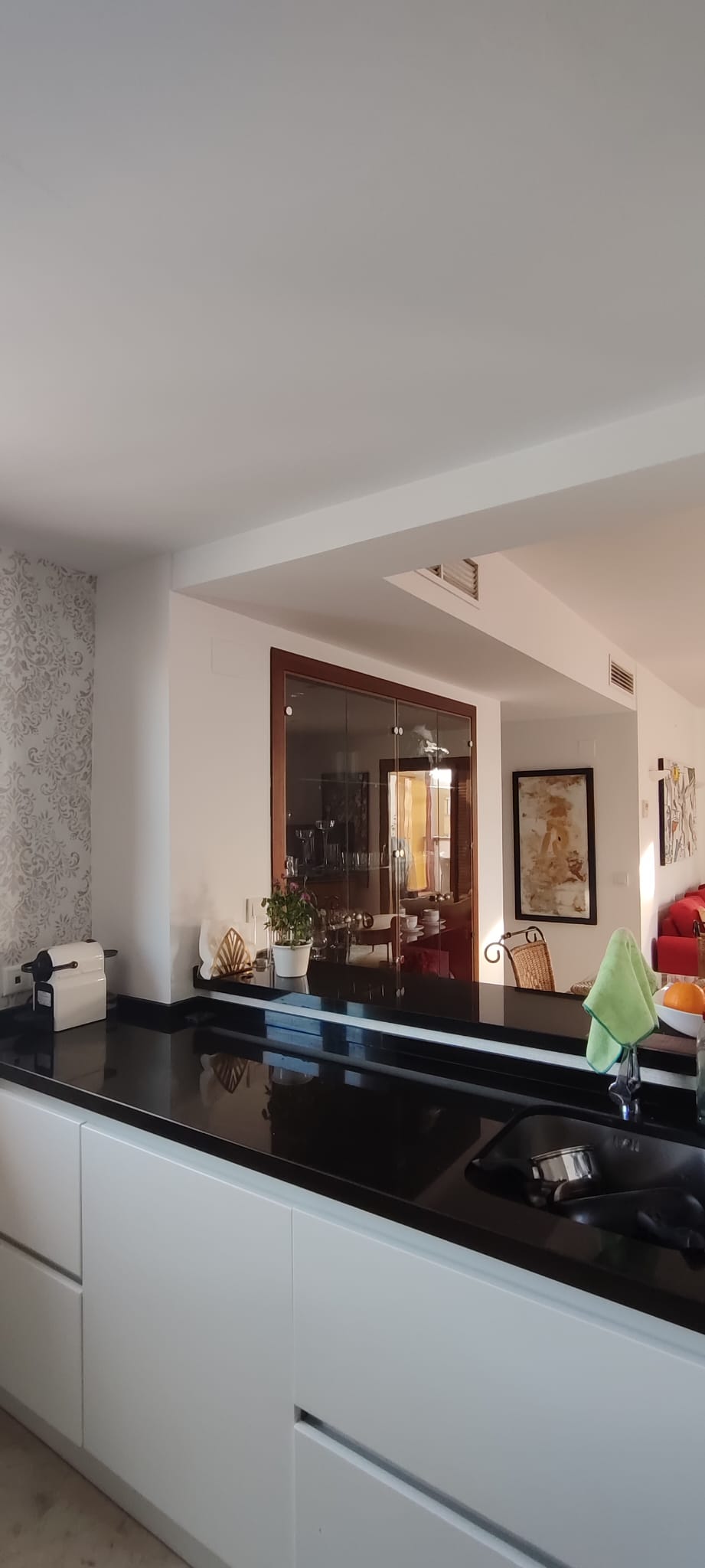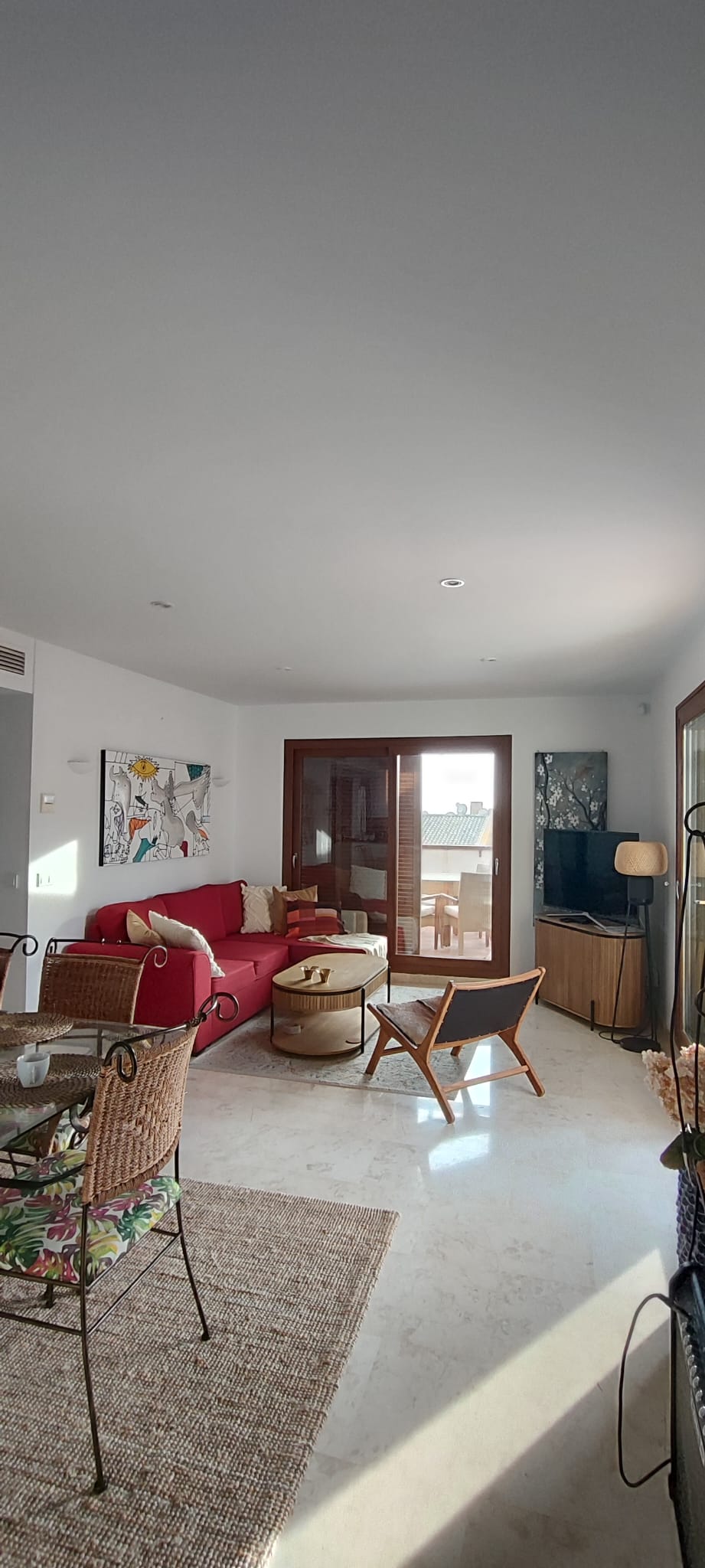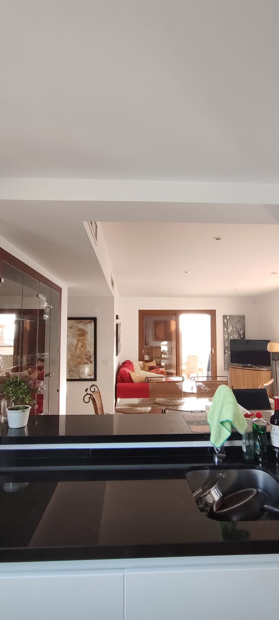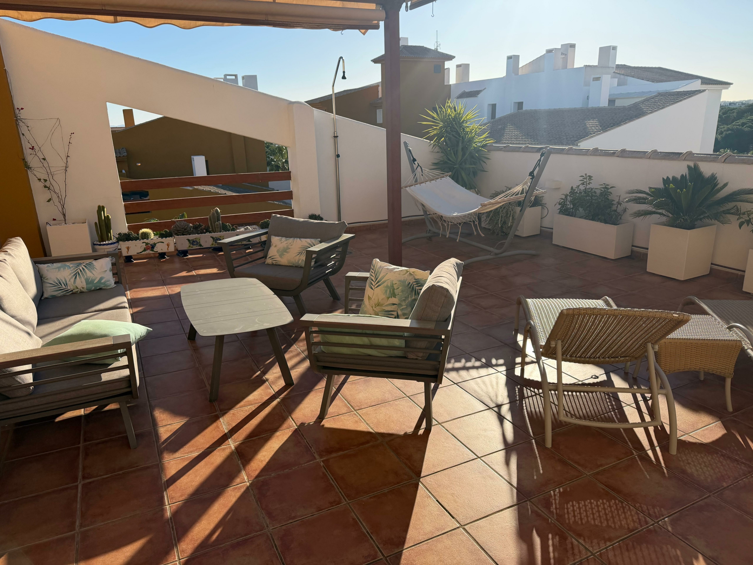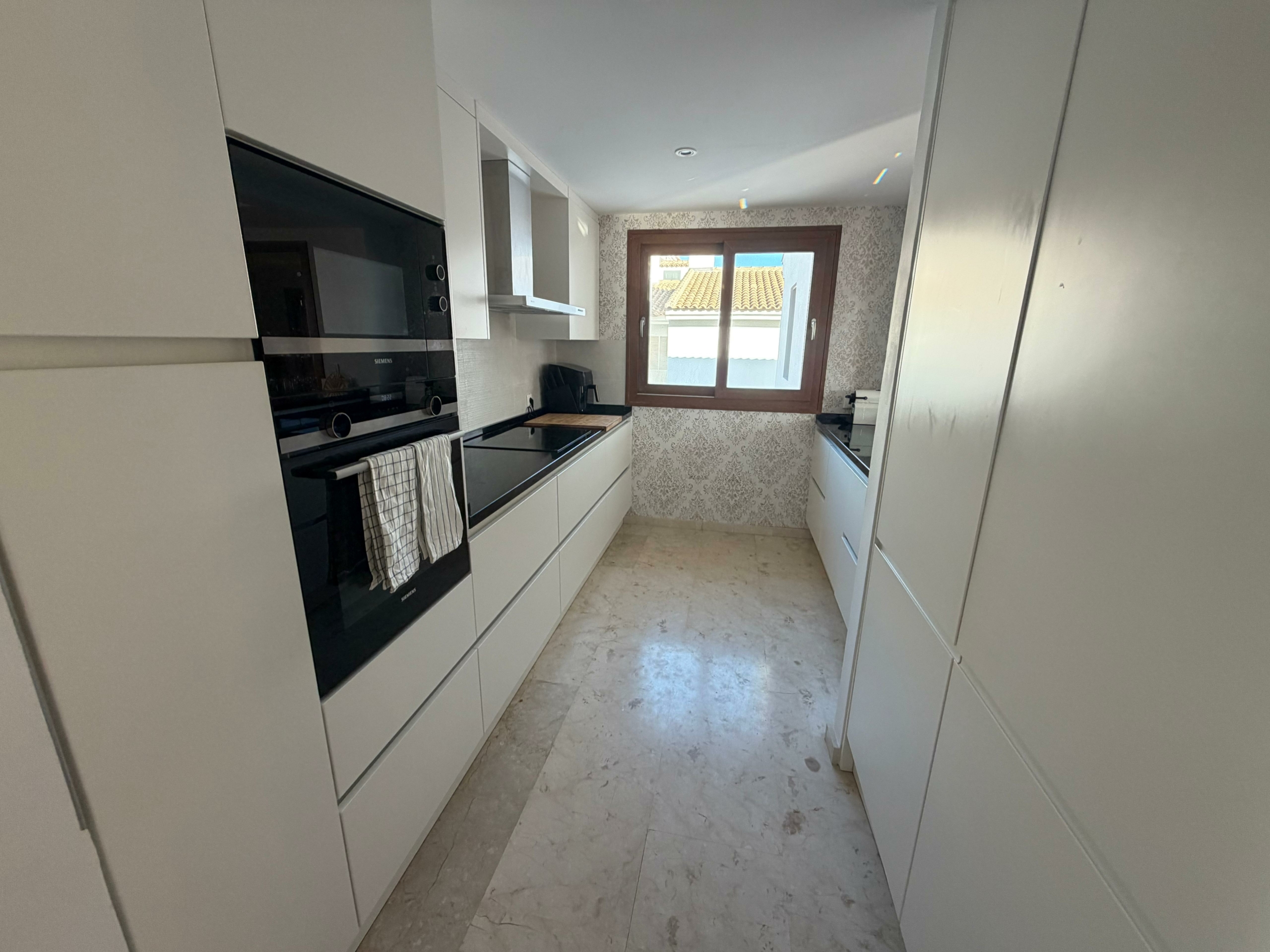 El apartamento cuenta con un amplio y luminoso salón con comedor y una moderna cocina americana. El salón da a una impresionante terraza de 65 m² con vistas a la piscina y a las zonas comunes. Es el lugar perfecto para relajarse, cenar al aire libre y disfrutar de más de 300 días de sol al año.