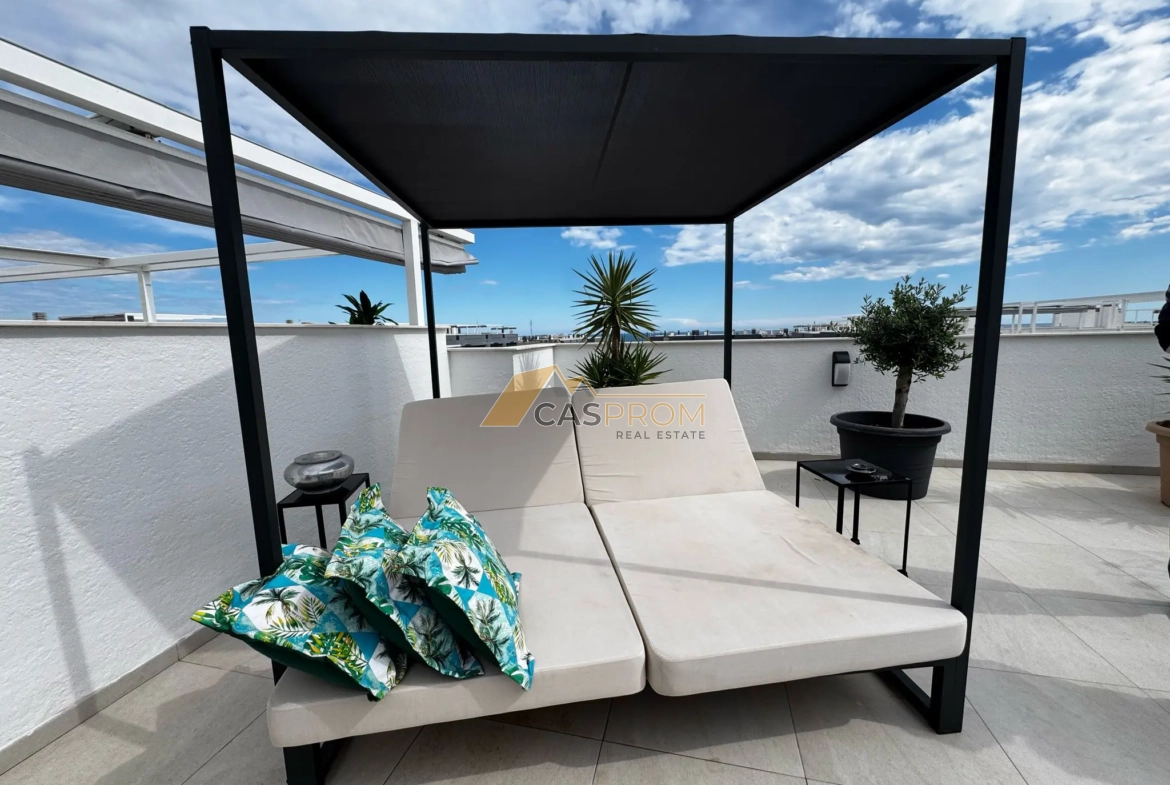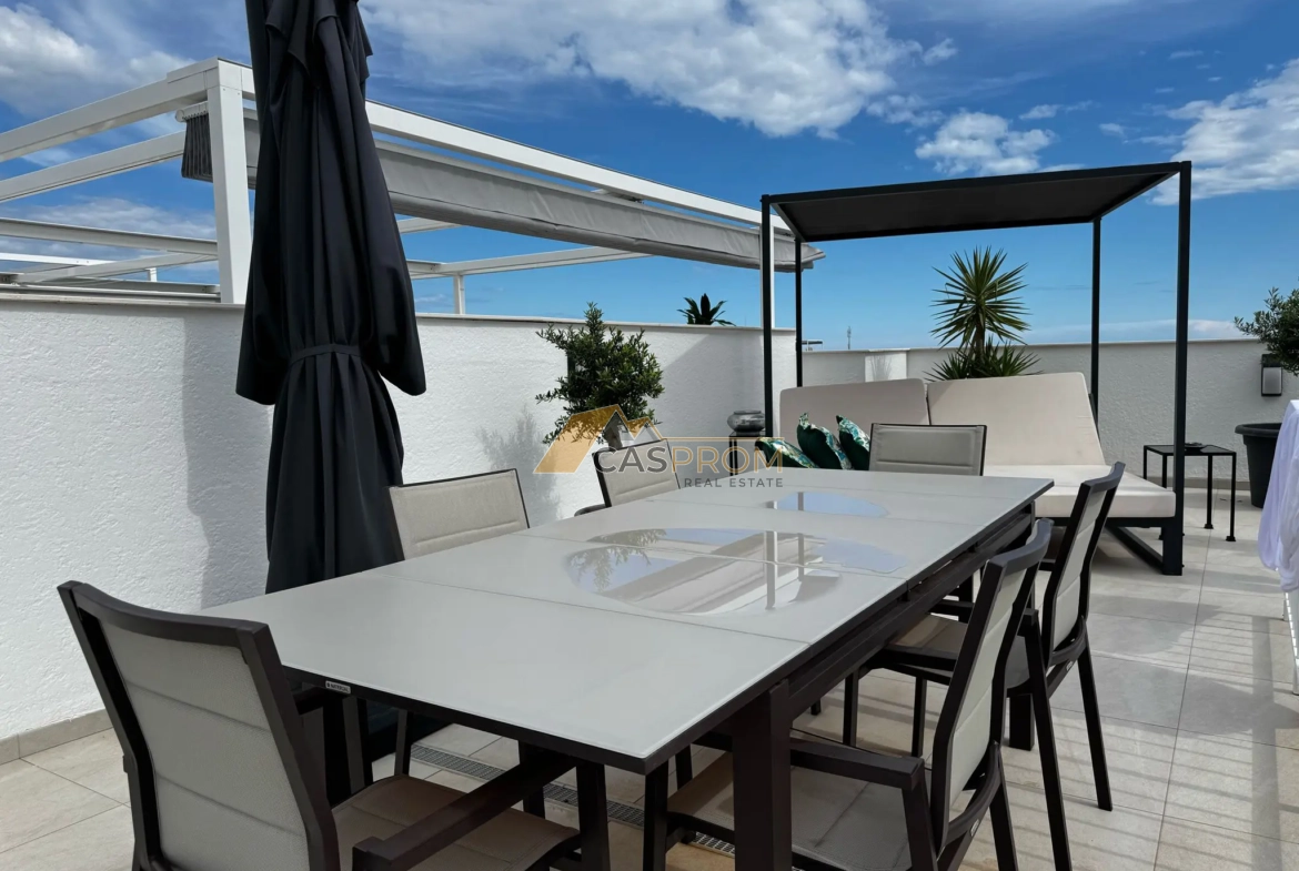 This exclusive penthouse, located in the prestigious Flamenca Village complex, offers a spacious and functional layout. Extensive glazing ensures excellent lighting and a pleasant Mediterranean atmosphere. Modern furnishings and high-quality appliances guarantee comfort and convenience.
