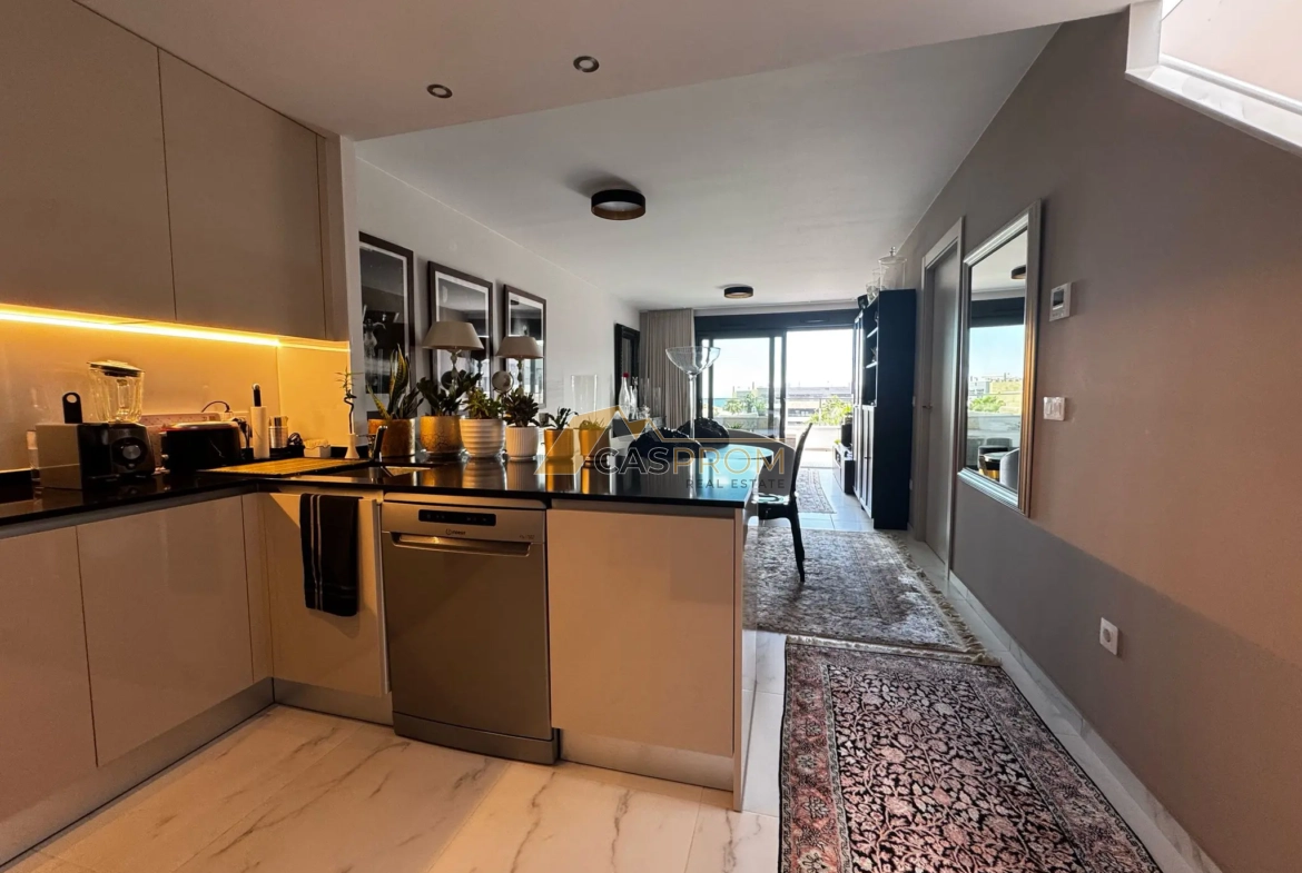 This property offers 140 m² of usable space, with a 40 m² solarium and a 20 m² terrace. The property is located on the 3rd floor and faces southeast. The apartment includes a space in the underground garage and a storage unit.