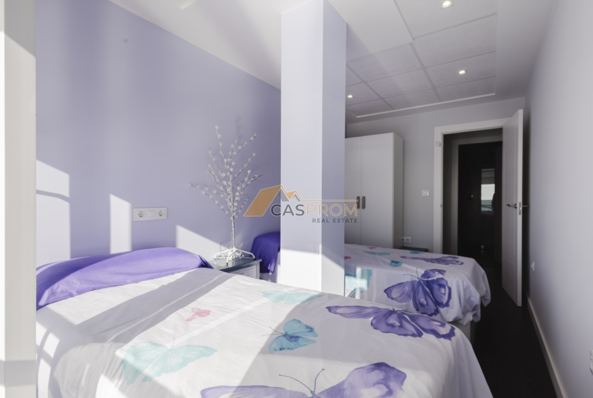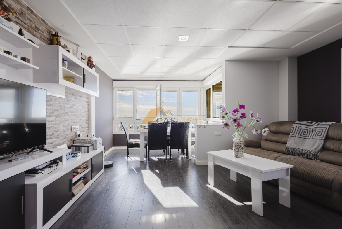 Exclusive renovated beachfront apartment, located in the sought-after Acequion area of Torrevieja. With a total area of 118 m², this attractive property stands out for its modern and functional design that reflects the Mediterranean style, ideal for enjoying the sunny climate. The apartment is completely renovated and has three spacious bedrooms, guaranteeing comfort and natural light throughout the day; it also offers two fully equipped bathrooms, and the property includes a large garage. Its southeast orientation maximizes sunlight and invites you to enjoy direct sea views from a spacious, bright living room. The apartment is located in a building with an elevator and a communal swimming pool.