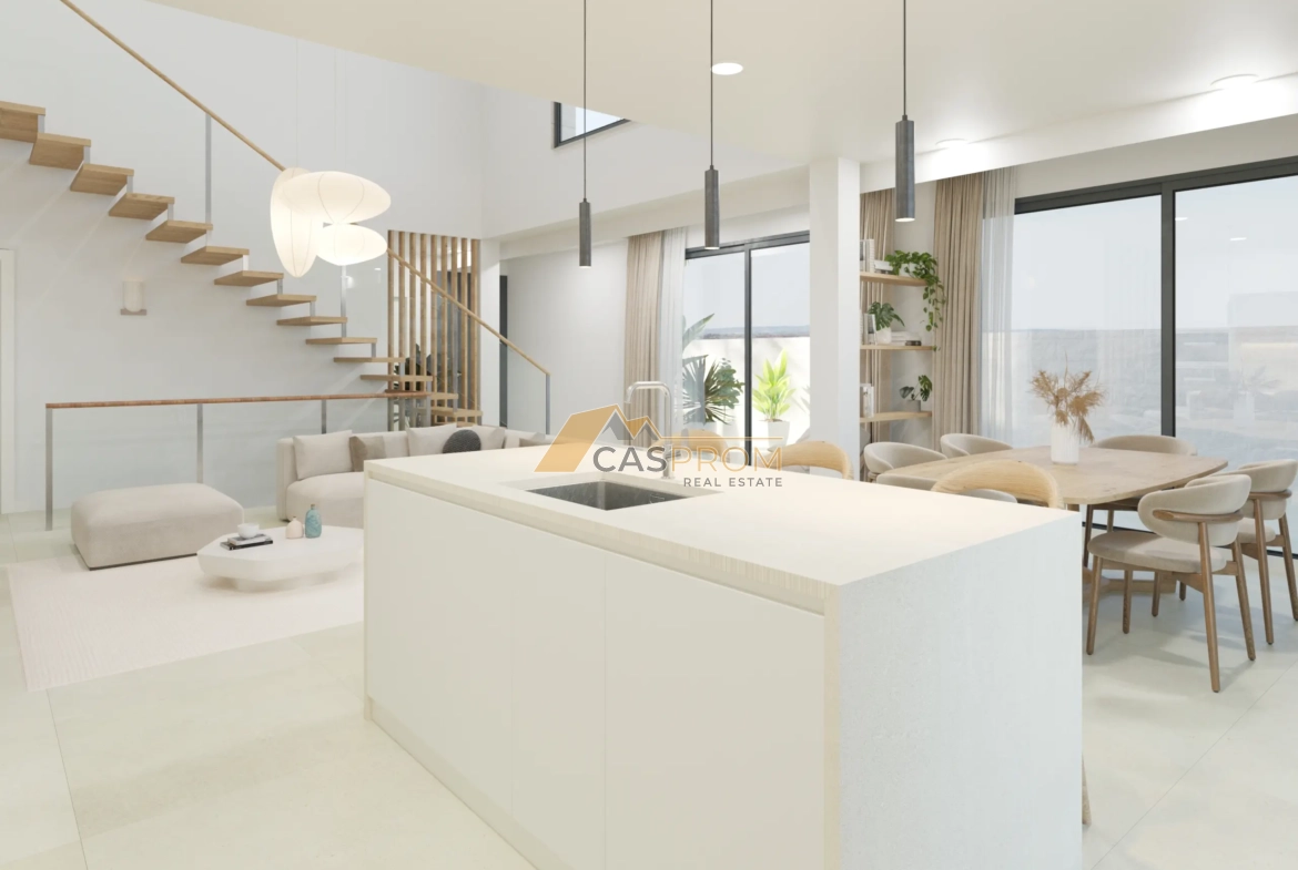 This modern, detached villa, located in the prestigious Ciudad Quesada district, features a minimalist Mediterranean design with an emphasis on light, space, and comfort. The development comprises three exclusive villas, each with a private pool and garden.