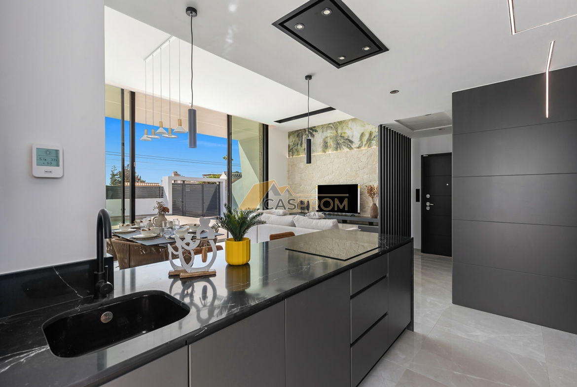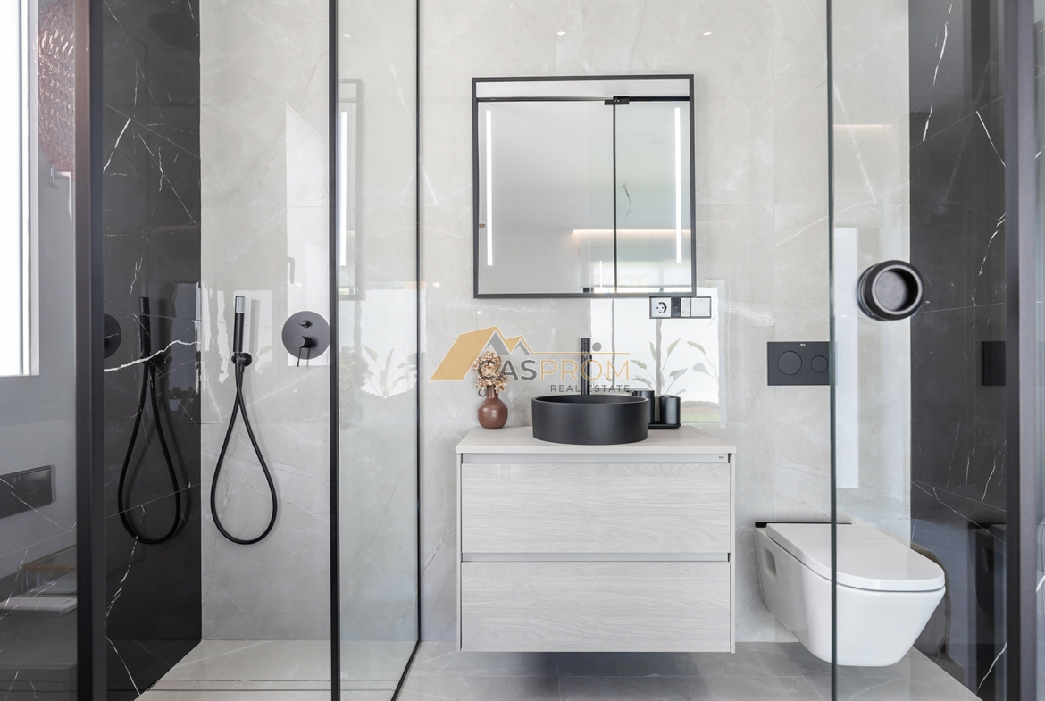 Esta villa cumple con los más altos estándares de lujo. La cocina está amueblada en un estilo moderno. Los baños están acabados con gres de alta calidad y cuentan con muebles de diseño y completo equipamiento. Esta villa es una nueva dimensión de lujo, perfecta para aquellos que buscan no sólo una casa, sino una verdadera obra de arte arquitectónico.
