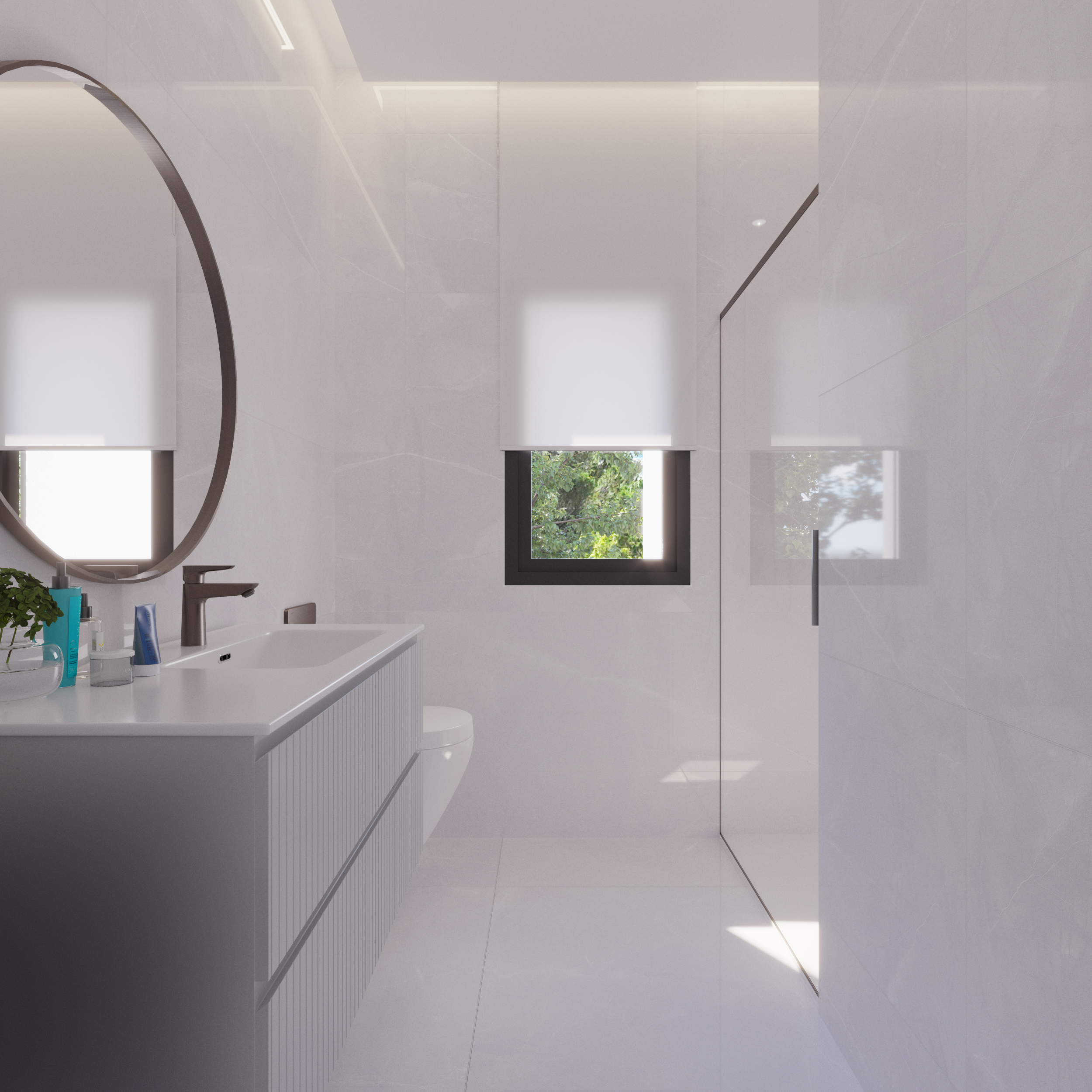 Los dormitorios cuentan con persianas eléctricas y los baños están acabados con lujosos cerámicos Villeroy & Boch y grifería Hansgrohe. El confort térmico está garantizado por la calefacción por suelo radiante en los baños y el sistema de climatización Airzone por zonas. Además, la casa está equipada con un sistema domótico, videoportero, sistema de alarma preinstalado, instalación de paneles solares y ascensor.
