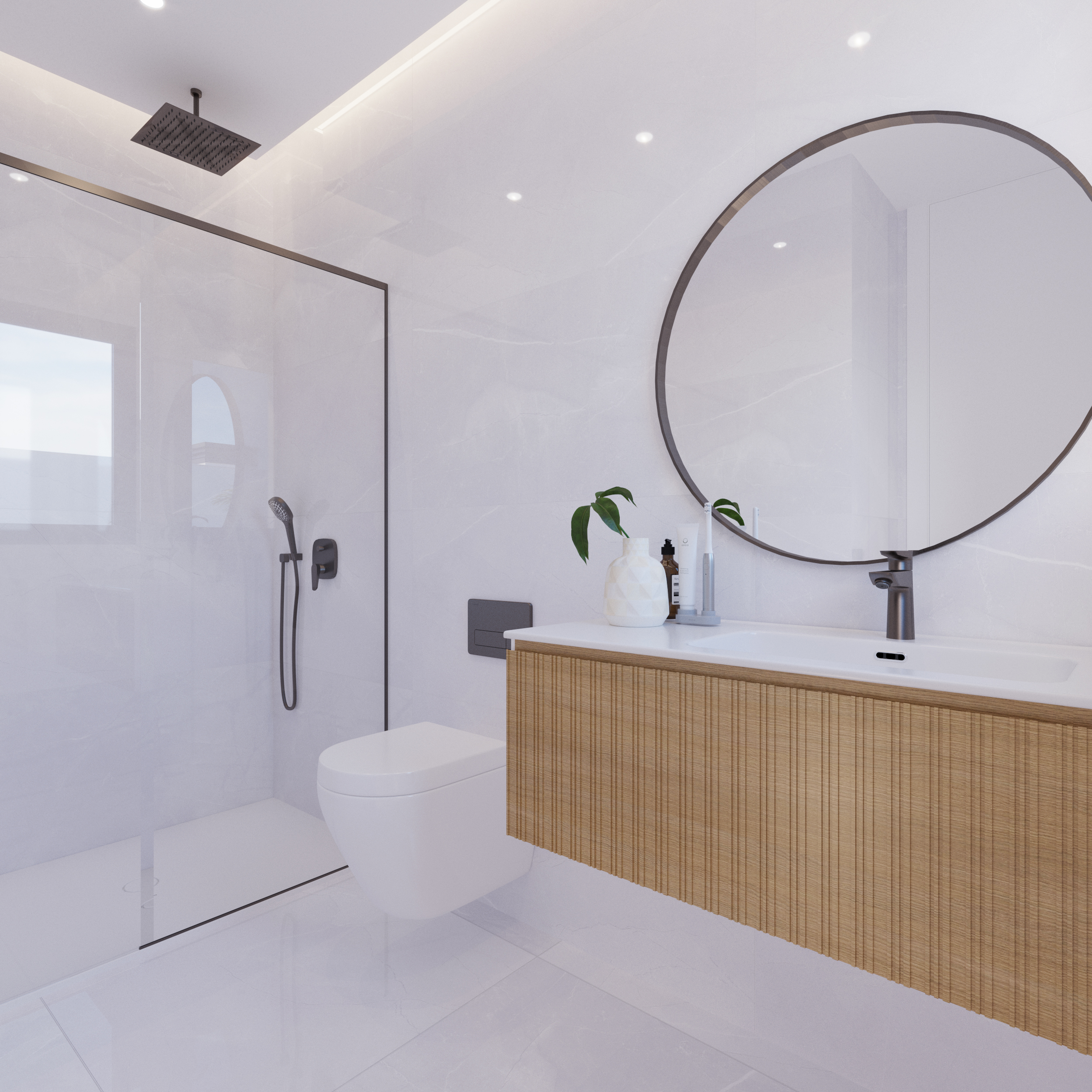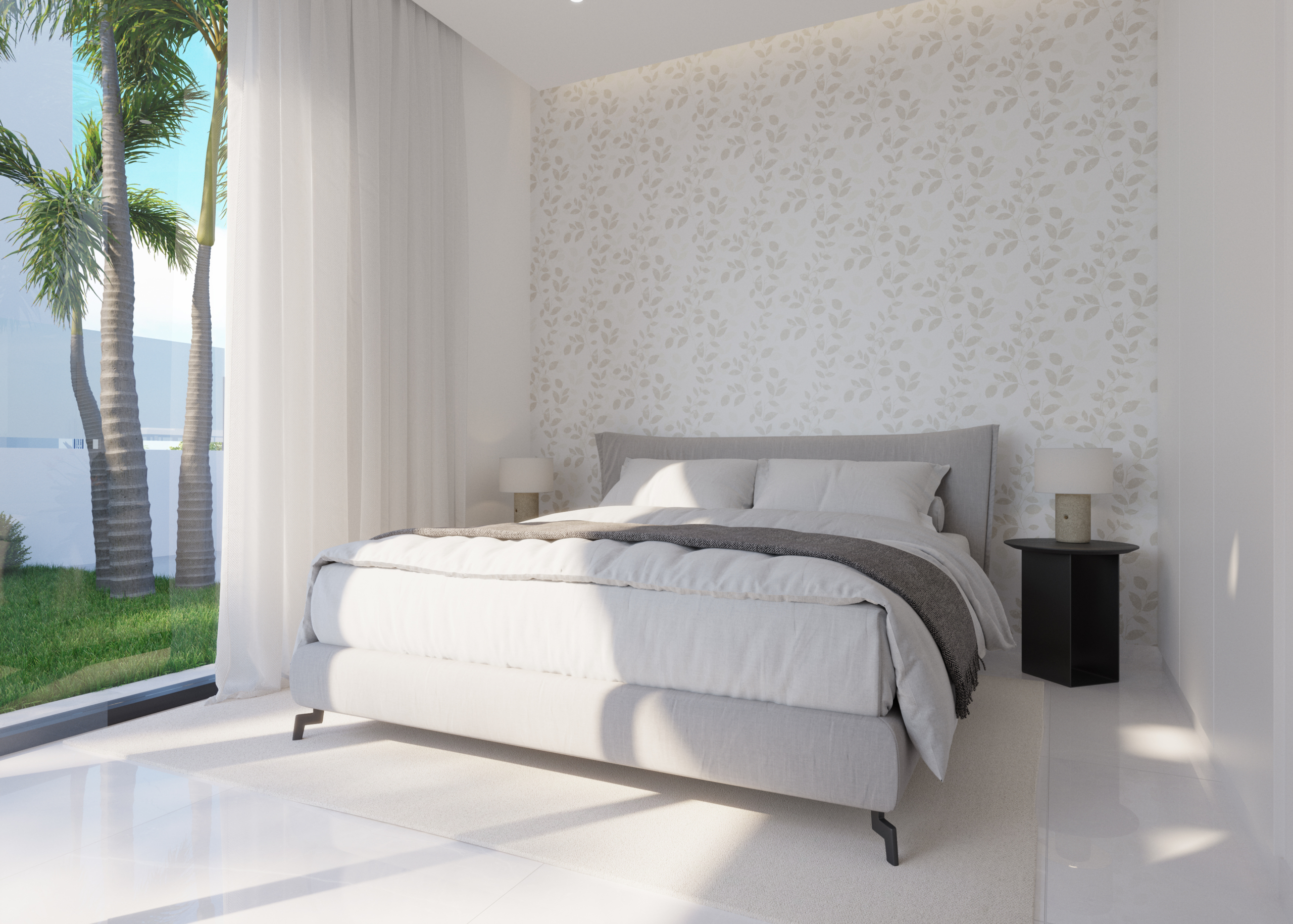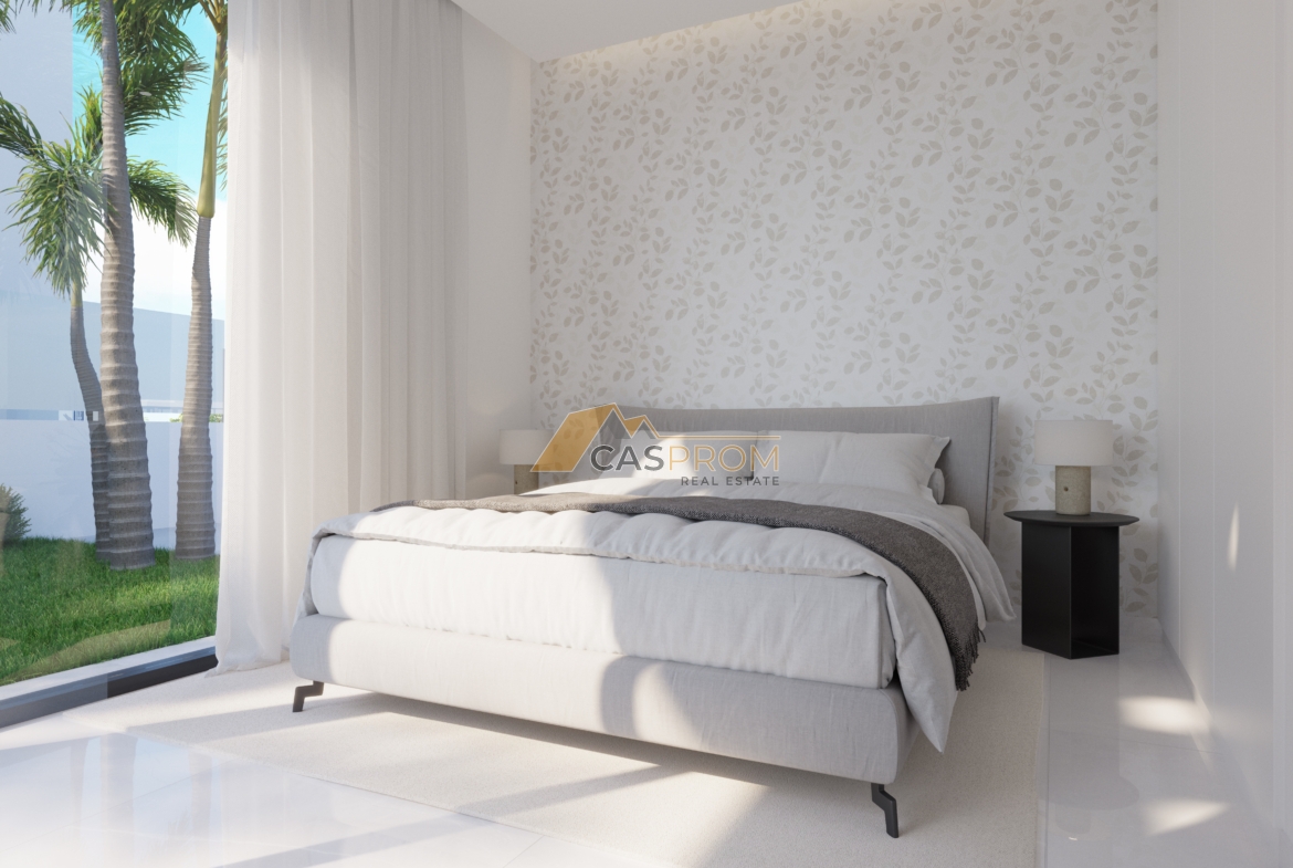 El interior de la villa impresiona por su amplitud y elegancia: grandes ventanales ofrecen vistas panorámicas y abundante luz natural. La cocina Siemens, totalmente equipada con encimeras de granito e iluminación LED, satisfará las expectativas de los clientes más exigentes.